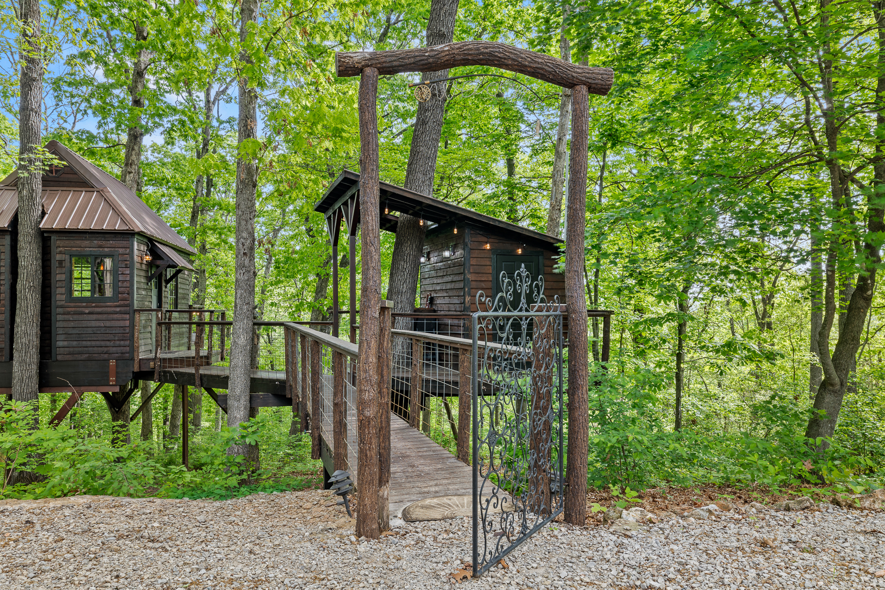 Positioned just minutes from one of Missouri’s most visited state parks, this turn-key short-term rental investment offers a rare combination of proven performance, unique product type, and prime location.This offering includes two established Airbnb treehouses, the Hideaway Treehouse and the Getaway Treehouse with Jacuzzi Bathhouse, situated together on a private wooded setting near Roaring River State Park. Both units are fully operational with a strong track record, making this an ideal acquisition for an investor looking for immediate income with upside.