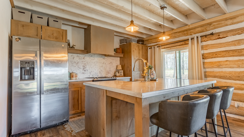 Welcome to your very own private retreat in Barry County, Missouri! Tucked away at the end of a private drive, this exceptional 27 +/- acres offers the perfect blend of seclusion and natural beauty. A scenic mix of open pasture and mature timber creates a picturesque setting, highlighted by breathtaking views of the surrounding rolling hills. A little under a mile of gravel road leads down to the heart of the property: the homestead.The custom-built 1,330 square foot cabin provides a comfortable and inviting place to unwind, whether you’re looking for a full-time residence or a weekend getaway. The charming wood-burning stove keeps things rustic but cozy when it’s cool, and a mini-split keeps things cool and comfortable in the warmer months. Enjoy cooking in the kitchen with custom cabinets and a large island. The cabin features 4 bedrooms and 1.5 baths, with the master being downstairs and 3 additional upstairs.