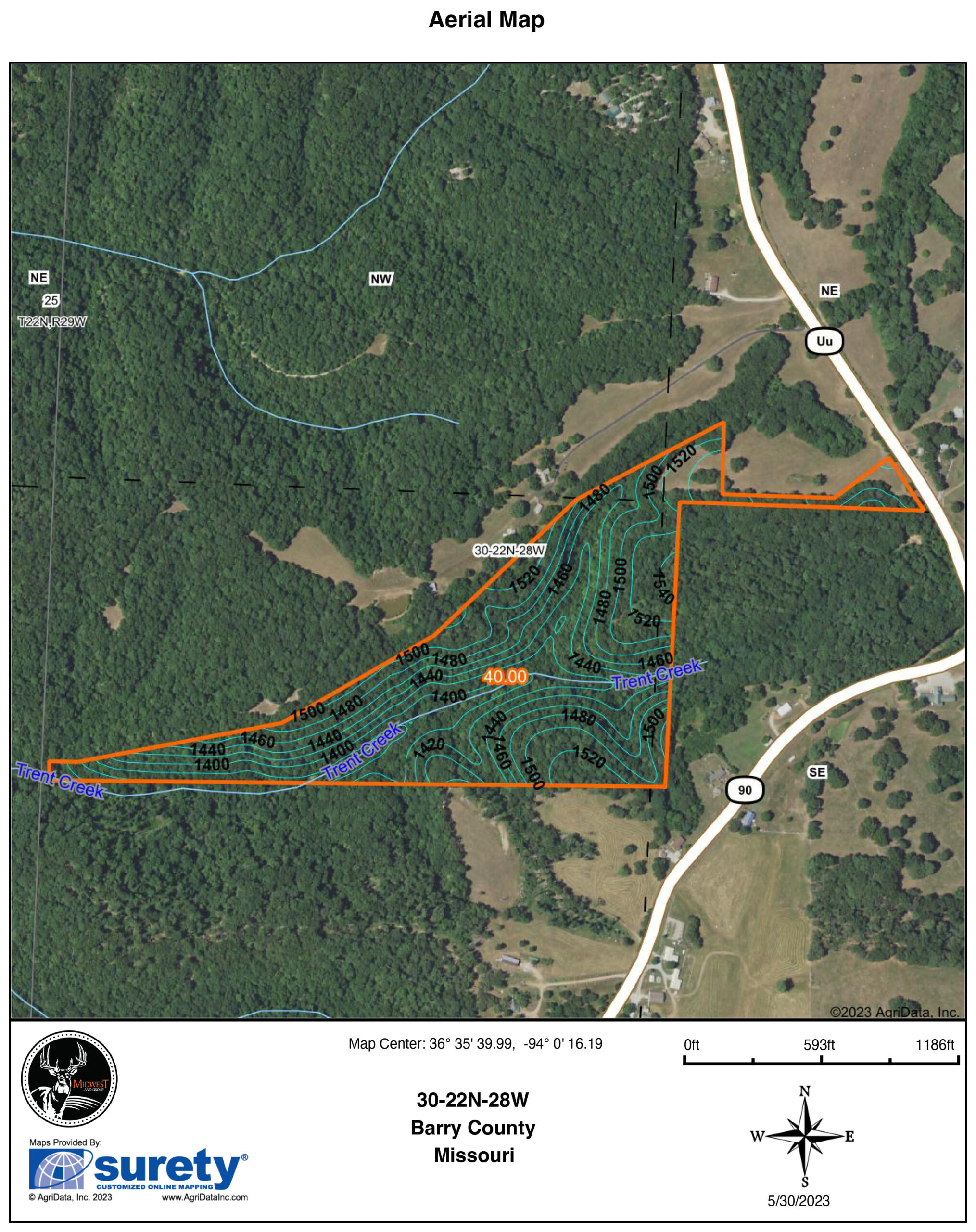 There’s something special about the Ozarks. Whether it’s the rolling hills, abundant wildlife, the clear streams, or the feel of the entire landscape, many who’ve seen it have dreamed of living here. If you’re ready to realize that dream, take a good look at this surveyed 40 acre parcel just west of Washburn, Missouri, in western Barry County. With blacktop road access via Highway UU right to the driveway entrance, it’s easy and convenient to get to. Pulling in the gate, an owned lane leads from the highway to a secluded meadow that would be the perfect setting for a secluded home or weekend cabin, and with rural water, electric service, and fiber internet available at the highway, you’ll have your place up and going in no time at all.Turning the corner past the meadow, you’ll enter some classic Ozarks timber, full of towering red and white oaks, hickories, dogwoods, and other hardwood species. The back part of this tract is rugged and secluded - two key factors in attracting and holding good numbers of game. Mature whitetail bucks often cruise the timber, offering a chance to harvest some quality protein and fond memories. In addition to the whitetail deer and turkeys that frequent the property, neighbors have also observed black bears. As Missouri’s bear population grows, you might have the chance to notch your tag on a Show-Me State bruin as well.