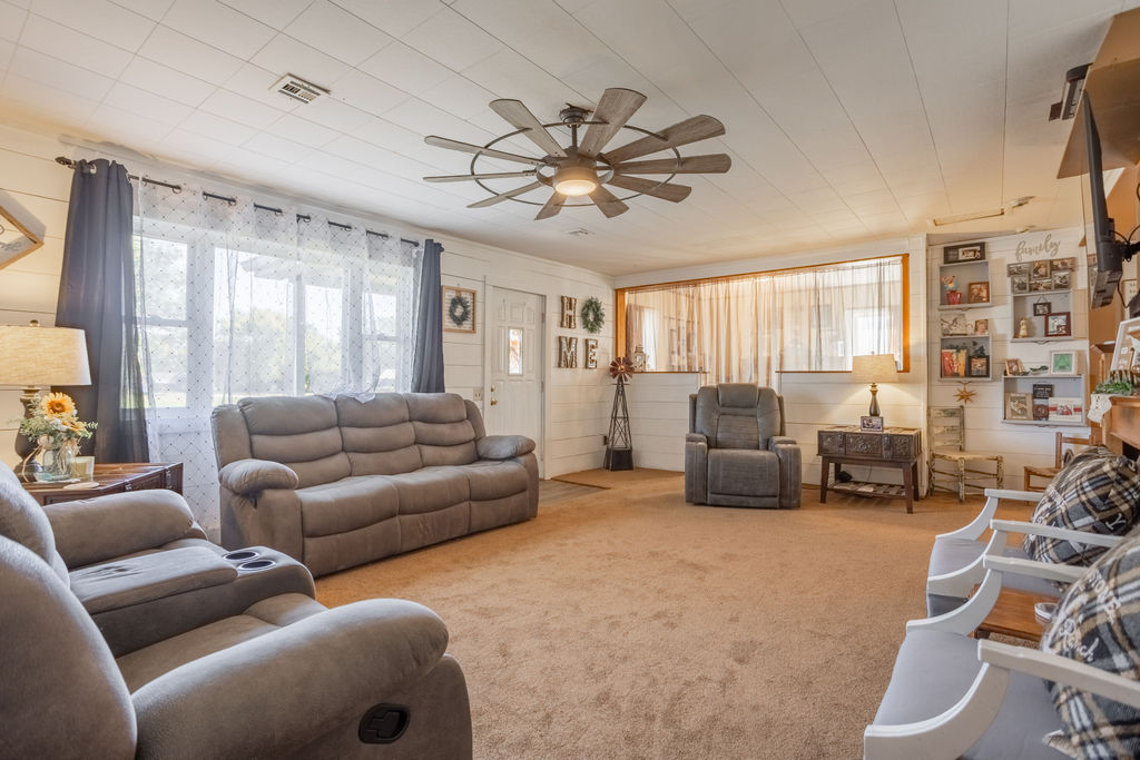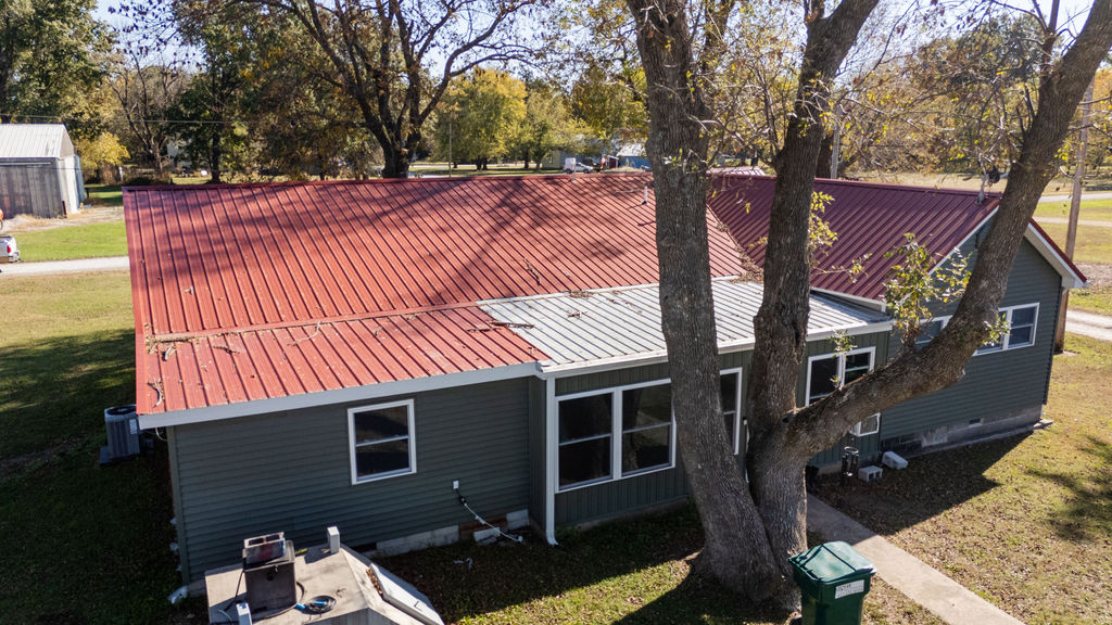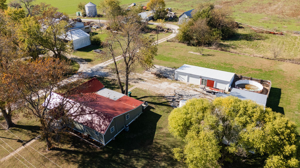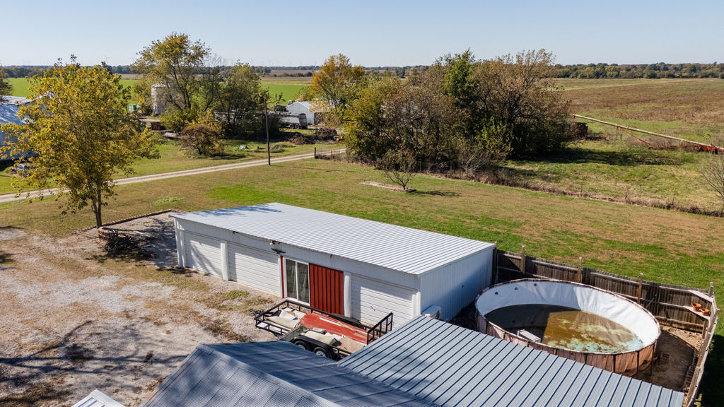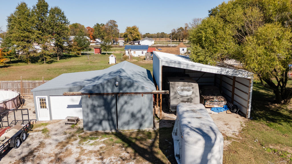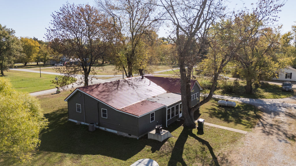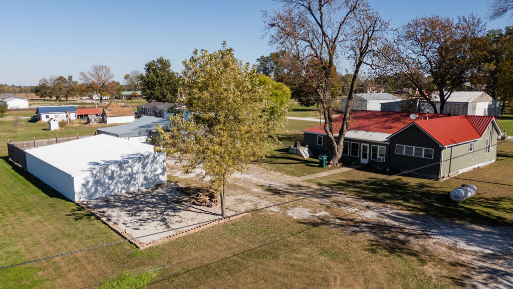 If you have been seeking a cozy home in a small town, look no further. With recent updates and renovations, it's the perfect place to retire, retreat, and relax in a small town setting. Walking in the back door, you are greeted by an enclosed porch with abundant sunshine and protection from the weather, providing year-round comfort. Once inside the house, you will find an updated kitchen with an island and plenty of room for a large dining table next to the west-facing windows. The large entry from the kitchen to the living room opens the space up for laughter between cooks and couch potatoes. A small adjoining room makes a great space for an office or a playroom for the little ones. The bathroom has been updated with a jet bathtub and shower, along with laminate wood flooring for durability. A spacious walk-in closet in the master bedroom provides ample room for large wardrobes, shoe collections, or a gun safe. Two more bedrooms with nice-sized closets are located across the hall, making this a great family home. A large laundry room makes weekly chores easier and provides a nice place to kick off muddy clothes when needed. The storm shelter next to the house is a great addition for safety when spring weather hits the Midwest.Outside, you will find a 3-bay garage that is perfect for the family with multiple drivers looking to keep their vehicles out of the elements. The newly built lean-to is a great place for a camper, tractor, mower, or boat to be stored. The 16’x30’ shop has electricity and protection from the weather, giving you the ability to accomplish projects year-round. Attached to the shop is a nice 12’x20’ insulated shed with electricity and a garage door, can someone say man cave! All of that on 1 acre still leaves room for football games, fire pits, and summer fun for the family.