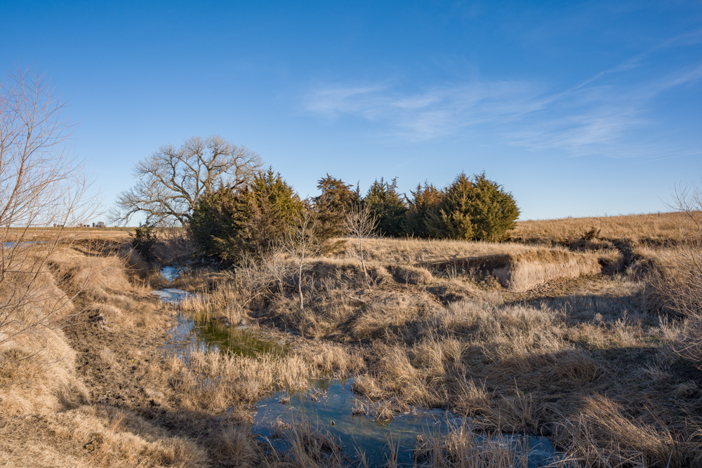 Tract 2 consists of 153.98 +/- acres with approximately 138.81 acres of productive dryland cropland with an additional 15.12 acres of fenced native grass pasture that offers supplemental grazing or lease potential. The pasture has a windmill livestock well, a 1-acre pond, and the Little Cheyenne Creek runs along the south pasture property line. The cropland is currently planted to approximately 51 +/- acres of second-year alfalfa, with the rest planted in wheat.