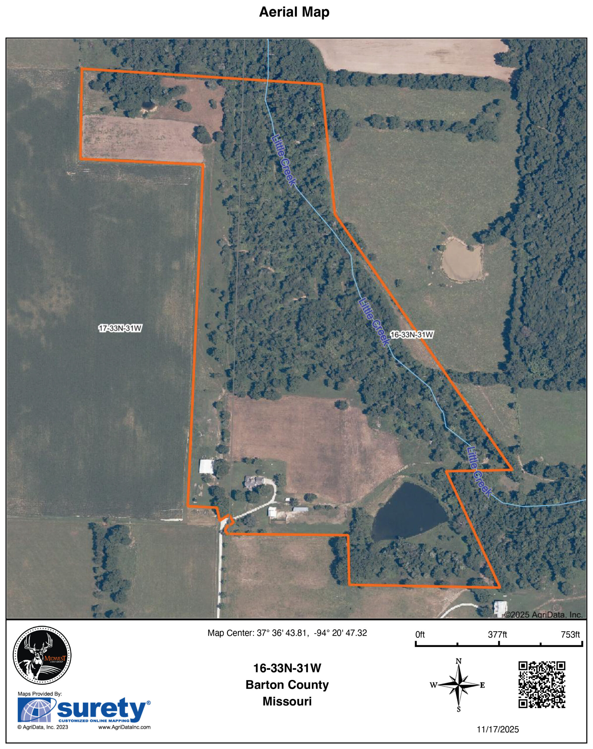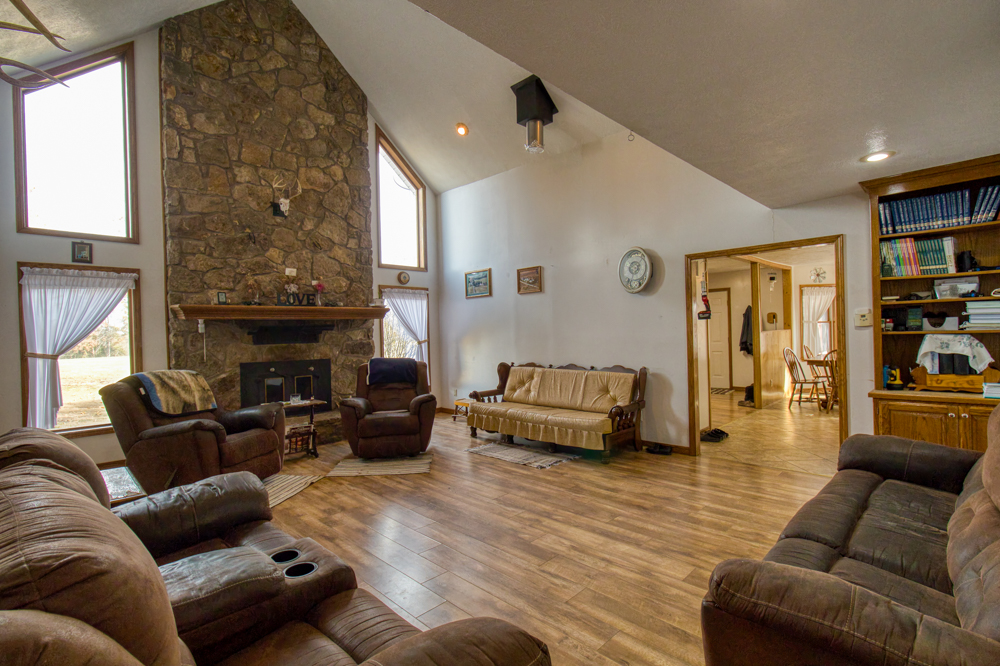 Stunning 52 +/- acre country estate available outside of Lamar, Missouri! As soon as you pull down the private drive, you realize the incredible setting this property has to offer. This small hobby farm is ideally laid out with a beautiful mix of pasture and timber, is fully fenced, and offers a peaceful, private setting with all the essentials already in place.At the heart of the farm sits a spacious 4 bedroom, 2 bathroom ranch-style house. The 2,634 square foot home features a finished upstairs/main level, large unfinished basement, 2 car garage, screened-in patio, large back patio hangout area, and a living area with vaulted ceilings and a cozy fireplace. The master is on the main level with a Jack and Jill bathroom shared with the rooms upstairs. The basement has tons of potential to add more rooms, with some of the space already being used as a bedroom.