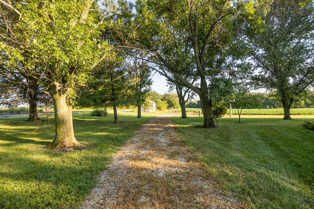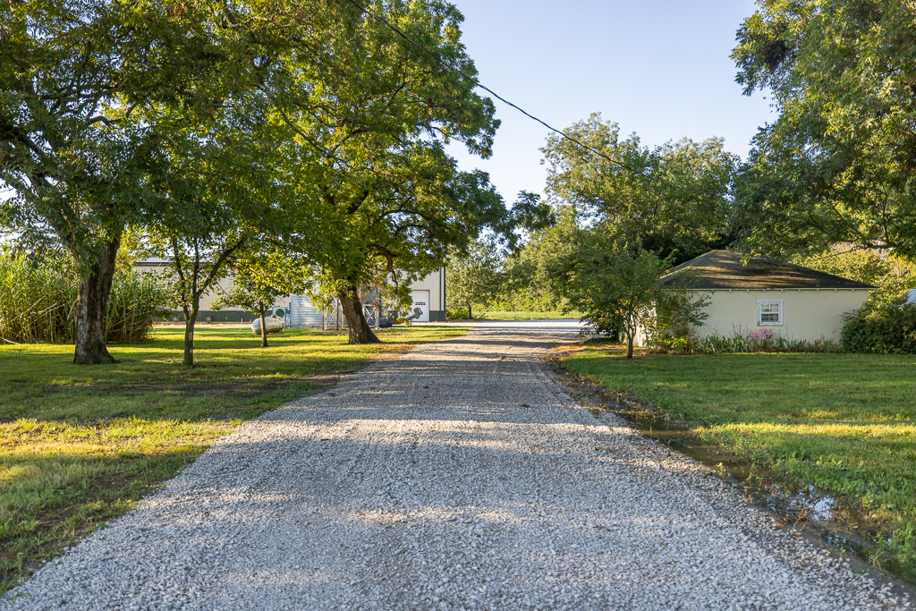 - Large gravel driveway and circle drive