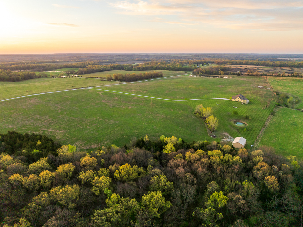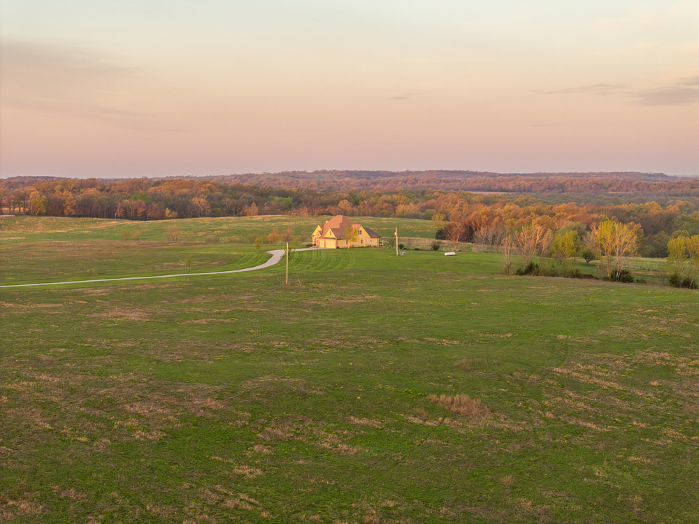 Escape the city life and live on 71.6 +/- acres that look like a setting from a magazine. You will fall in love with the 1,000+ foot driveway access to the house that sits perfectly overlooking the property. Enjoy the sunrise and sunset views that literally go on for miles. The gently rolling land mainly consists of amazing pasture ground along with a 5 +/- acre patch of timber. It gets even better with a 2.5 +/- acre spring-fed pond that is loaded with fish! The land offers it all and the real possibility of making it your very own country homestead.The 5 bedroom, 4.5 bathroom house was built in 2005 and offers plenty of space for the family and entertainment. It’s a must-see! The main level features a living room with a fireplace, vaulted ceilings, formal dining room, oversized eat-in kitchen, and a massive master suite. The upstairs includes 4 spacious bedrooms, 2 bathrooms, and an additional large play or storage room. The full walkout basement offers plenty of storage space and is currently framed as a separate studio apartment-style living quarters for guests or in-laws. Another awesome feature is the oversized 5-car garage offering plenty of room for vehicles, gear, or a workshop. Don’t forget about the incredible deck off the main level with amazing scenic views. Another bonus is the 30’x50’ outbuilding that will come in handy for storing farm equipment and other fun toys. This property checks all the boxes!