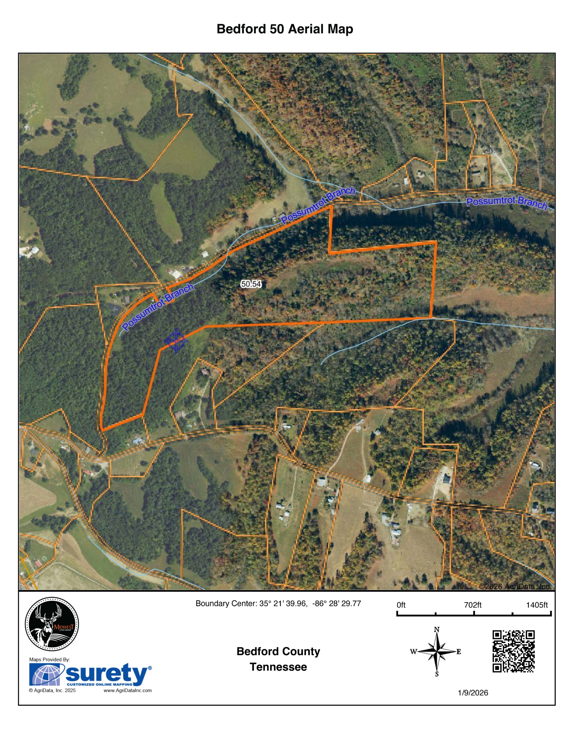 Come and take a look at this great opportunity to build your dream home in the hills of southern Bedford County. This 50 +/- acre farm offers a cleared ridge top that provides scenic views and would make an ideal location for a new home. The lower side of the property sits along 3,000 +/- feet of paved county road frontage from Possum Trot Road. Electricity, city water, and fiber internet are conveniently all available at the road. Multiple perc sites have been previously located and will support the use of four bedroom homes. A high-quality spring is also located on the property, offering an excellent “backup” water source.
