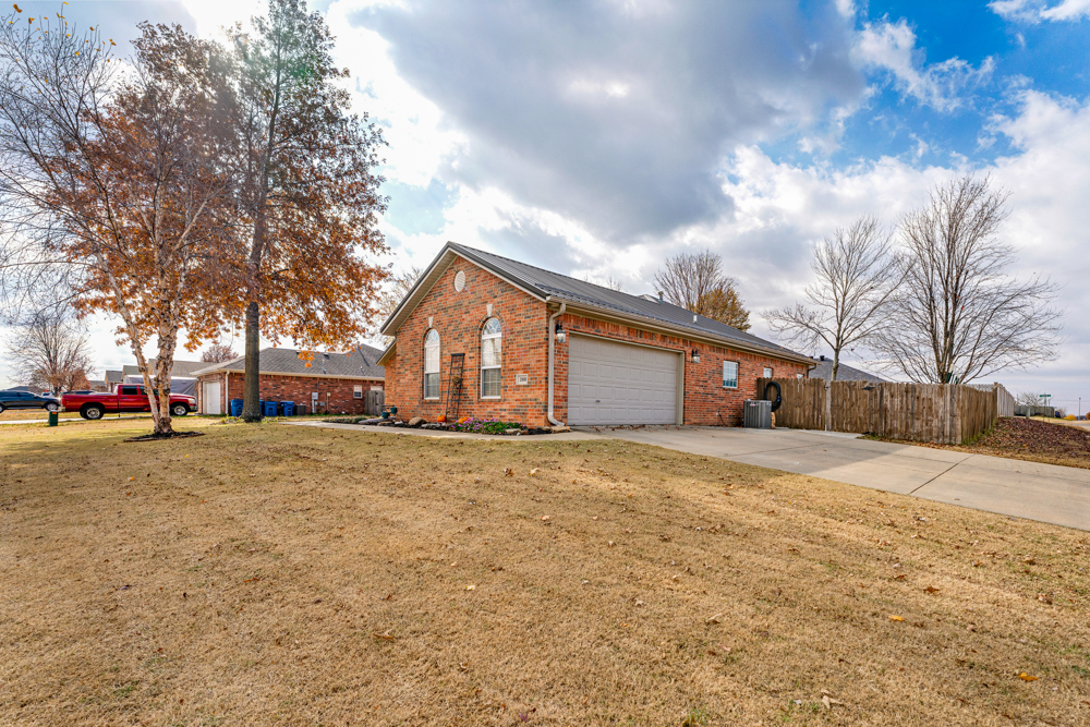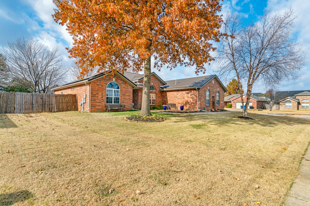 Discover the charm of Bentonville with this stunning 4-bed, 2-bath all-brick home situated on a desirable corner lot in the Windwood Subdivision. This residence boasts a side-entry garage, luxurious tile flooring, granite countertops, and open living and dining rooms. The Master bath is complemented by a relaxing soaking tub and a separate shower. The expansive lot features a privacy fence and a covered patio, creating an ideal setting for entertaining guests. The living room seamlessly connects to the outdoor area and includes a cozy gas fireplace. With a new metal roof and a covered patio, this home not only offers exceptional curb appeal but also enhances your outdoor living experience.Property Features