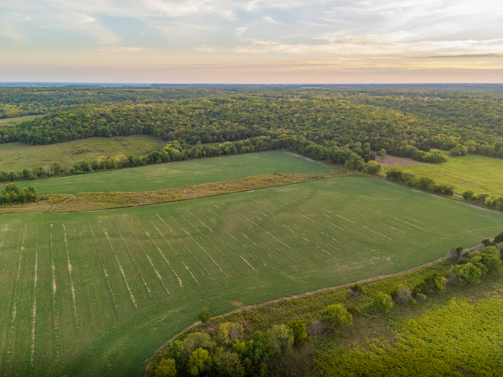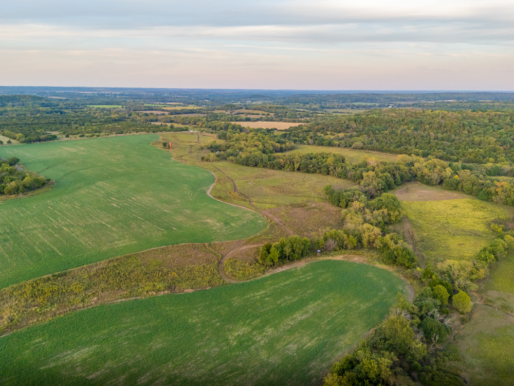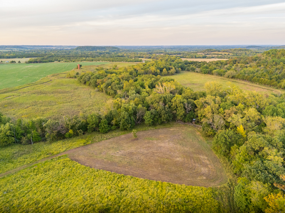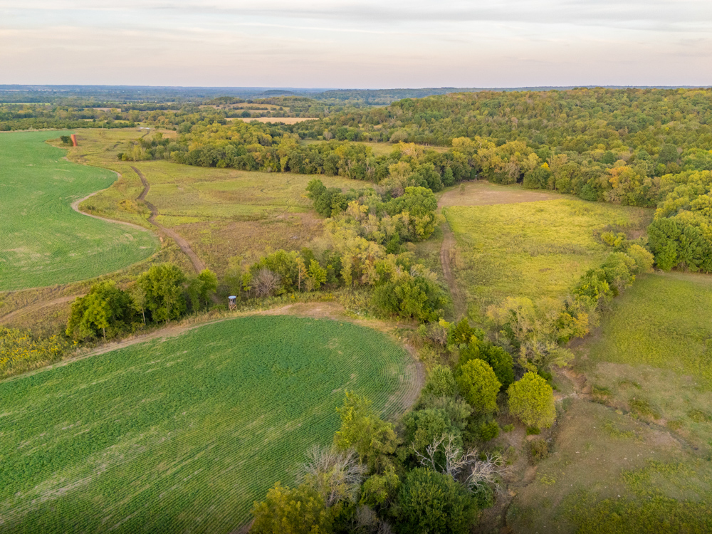 Located just south of Mapleton, Kansas, in northern Bourbon County, this 130 +/- acre property combines excellent hunting and farming potential. It features over 60 +/- acres of tillable ground. Currently, planted in beans and sits in a proven big deer neighborhood. This property is surrounded by large landowners and some that don't allow any hunting, for added seclusion and quality wildlife habitat.Trippie Creek runs through the property, lined with mature oak timber, and there’s a pond for additional water sources. Access is easy with road frontage on the north and east sides and multiple entry points. Brand new trails were just mowed, allowing access into blinds and allowing us to get around the property even more easily. Two elevated Diamond blinds and a 1,000-pound spin cast feeder are already in place, along with a planted 1.5-acre foodplot with one of the blinds overlooking it. There is a lot of potential in this property, and the number of bucks on this property will knock your socks off.