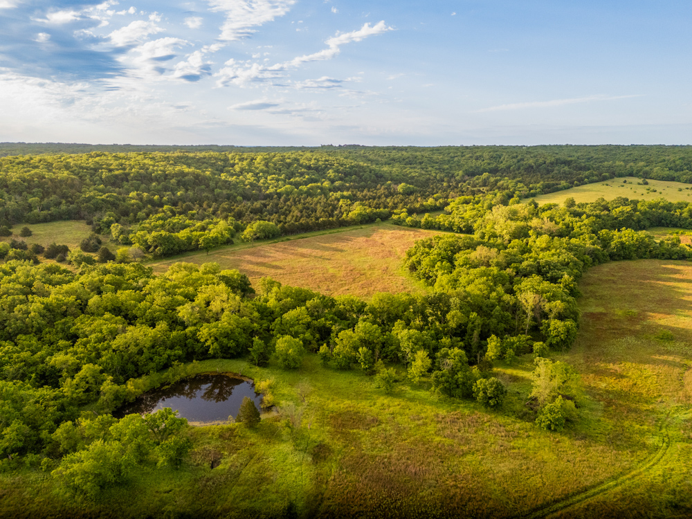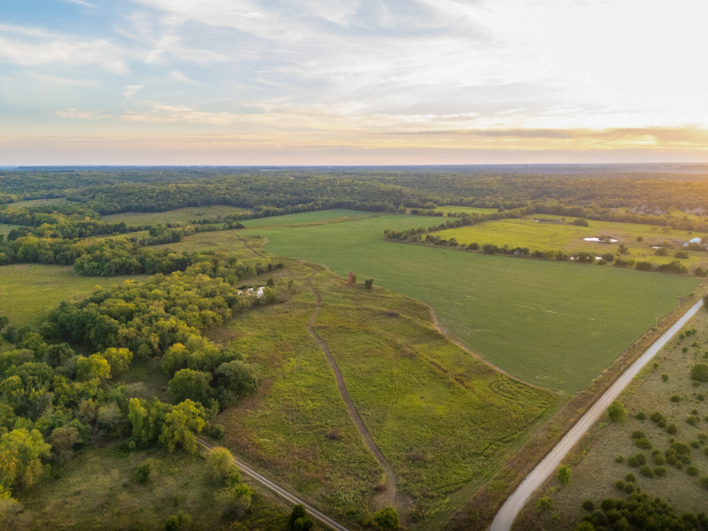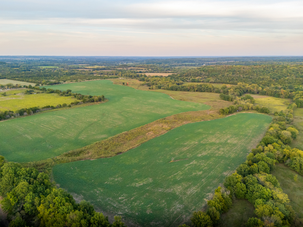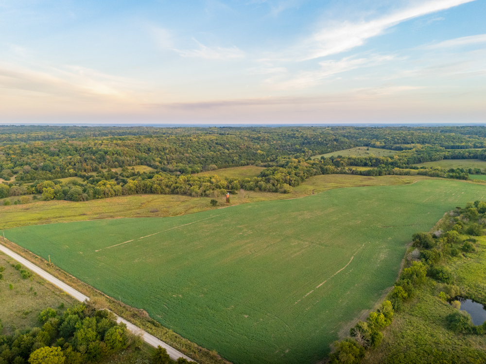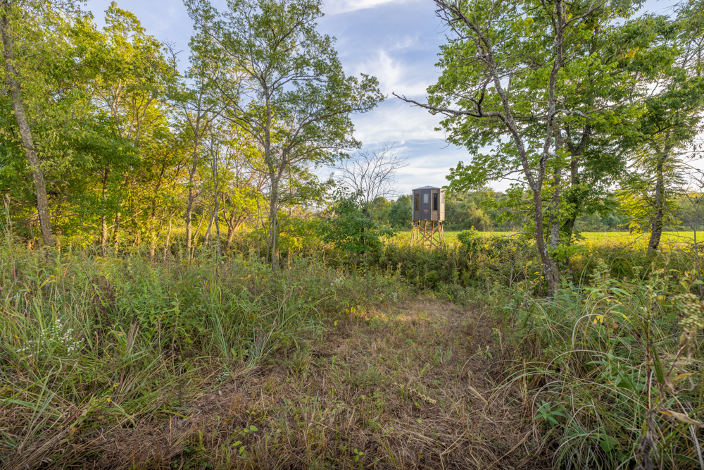 Located just south of Mapleton, Kansas, in northern Bourbon County, this 130 +/- acre property combines excellent hunting and farming potential. It features over 60 +/- acres of tillable ground. Currently, planted in beans and sits in a proven big deer neighborhood. This property is surrounded by large landowners and some that don't allow any hunting, for added seclusion and quality wildlife habitat.Trippie Creek runs through the property, lined with mature oak timber, and there’s a pond for additional water sources. Access is easy with road frontage on the north and east sides and multiple entry points. Brand new trails were just mowed, allowing access into blinds and allowing us to get around the property even more easily. Two elevated Diamond blinds and a 1,000-pound spin cast feeder are already in place, along with a planted 1.5-acre foodplot with one of the blinds overlooking it. There is a lot of potential in this property, and the number of bucks on this property will knock your socks off.