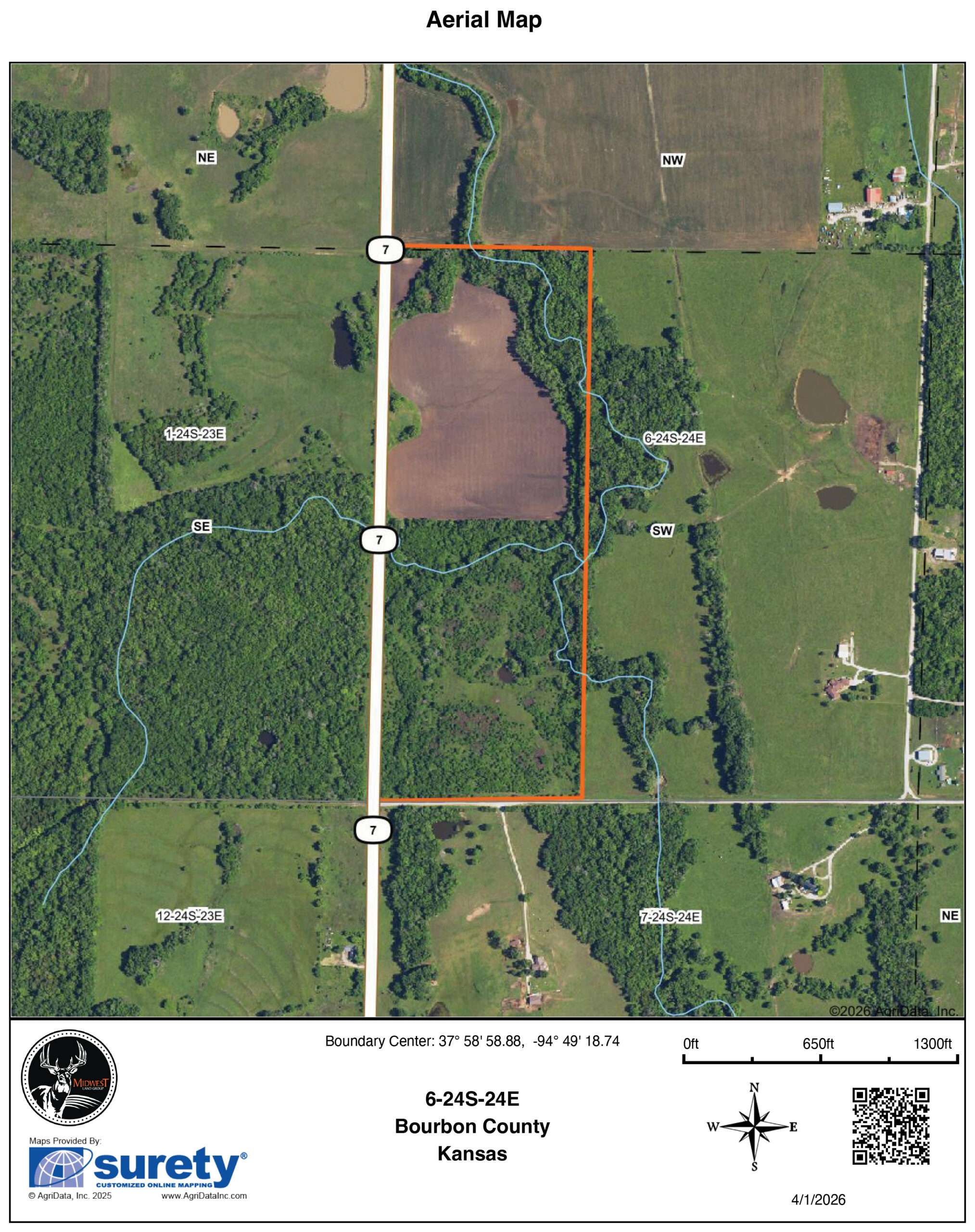 If you’ve been searching for a manageable, high-quality hunting tract in Southeast Kansas, this 60 +/- acre farm in Bourbon County checks all the boxes.This property is perfectly set up for whitetail deer hunting, with a proven mix of habitat and income. Approximately 20 acres of tillable ground provide an annual cash return while also serving as a built-in food source to attract and hold deer. The remaining acreage is made up of thick bedding cover and mature creek bottom timber—ideal for creating natural travel corridors and pinch points that consistently produce encounters with mature bucks.
