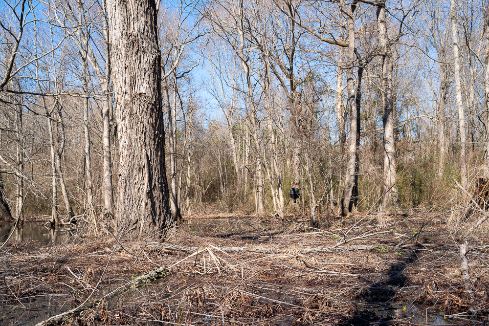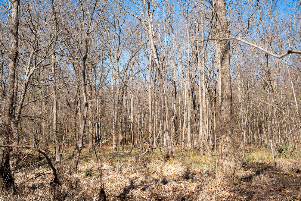 Abundant whitetail deer sign is visible throughout the property, confirming the strong hunting potential this tract offers. The combination of hardwood timber, creek frontage, and wetlands makes this a well-balanced and highly desirable recreational property.