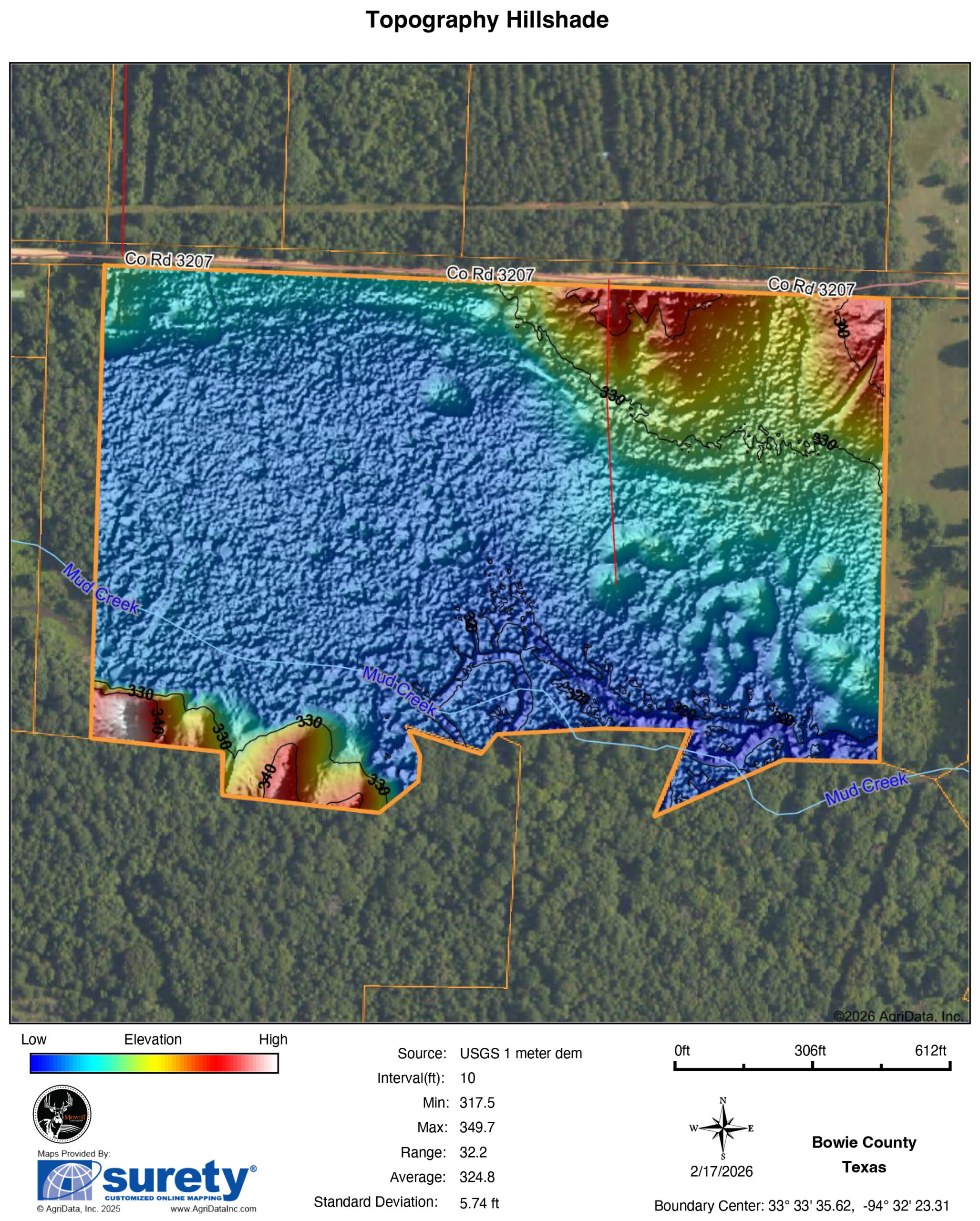 - Mud Creek frontage along the south boundary