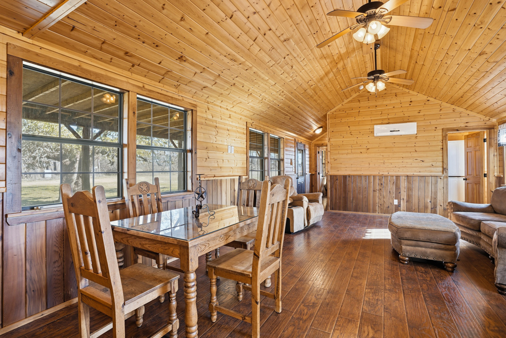 Discover the perfect blend of rugged Texas beauty and first-class improvements on this exceptional 153.742-acre property in the heart of Brown County. Ideally suited as a private hunting retreat, working ranch, or weekend getaway, this turn-key estate offers everything needed to enjoy the best of rural living from day one.At the main entrance of the property sits a beautifully appointed 2-bedroom, 2-bath cabin, thoughtfully designed for comfort and relaxation. Whether you’re unwinding after a day in the field or hosting family and friends, the cabin provides a warm and inviting home base with scenic views in every direction.