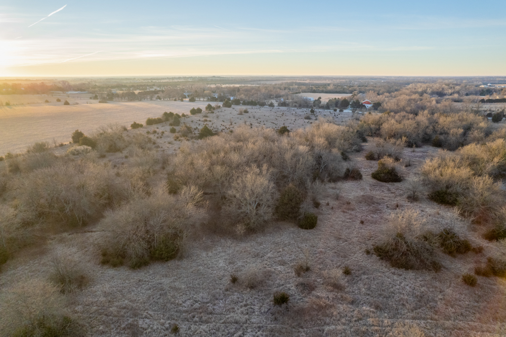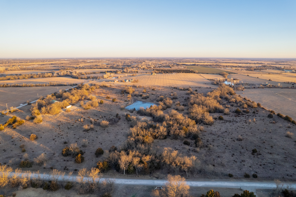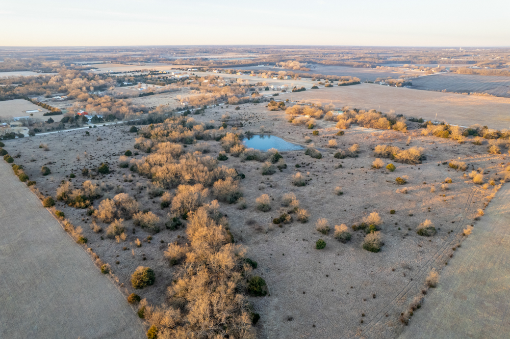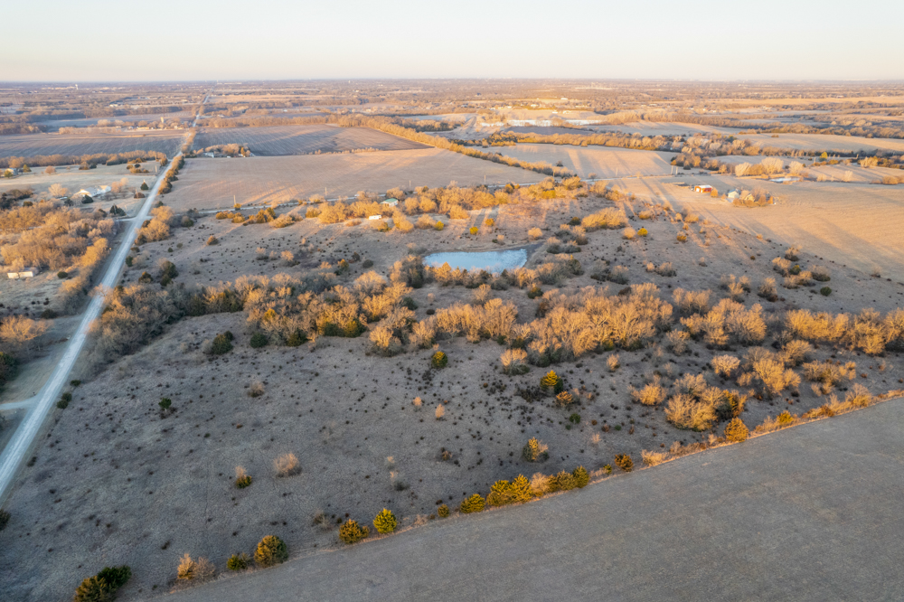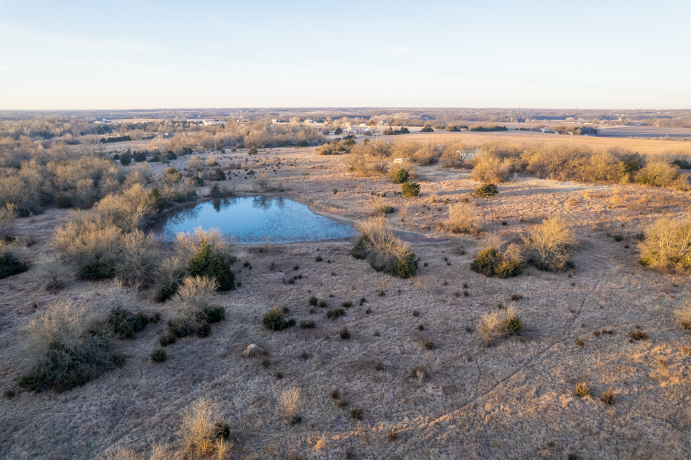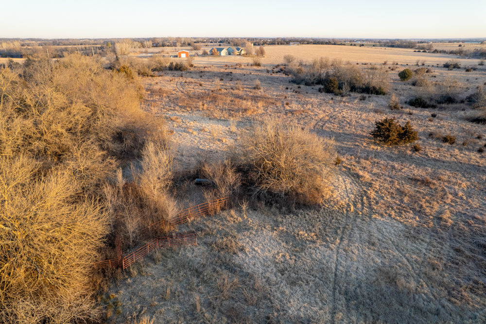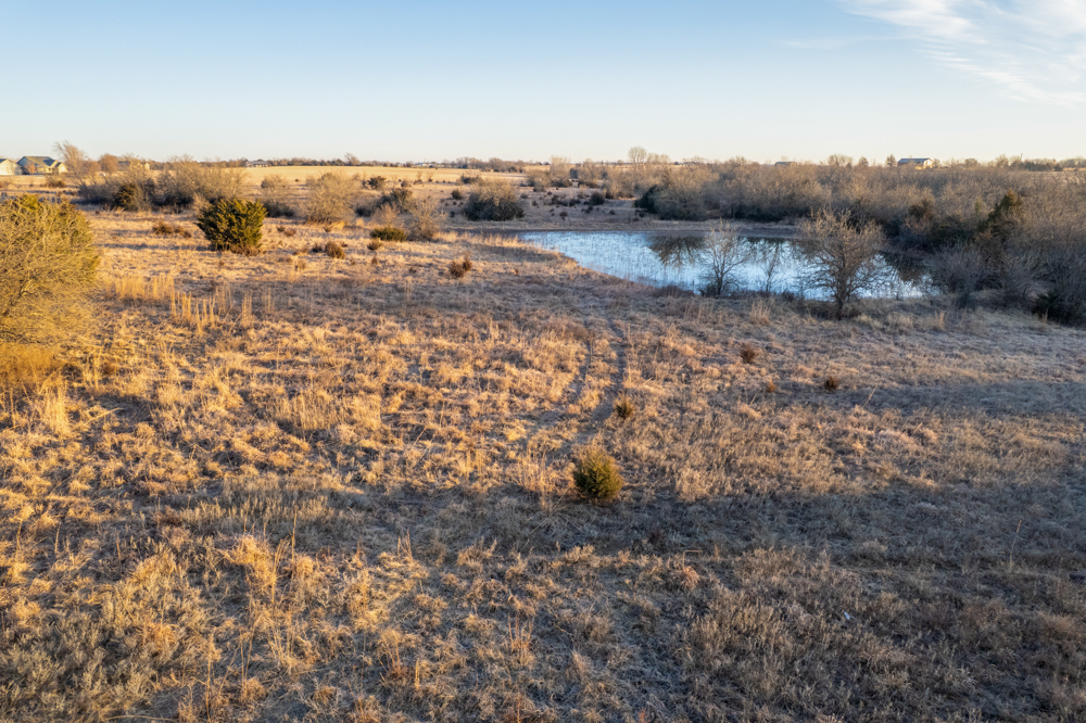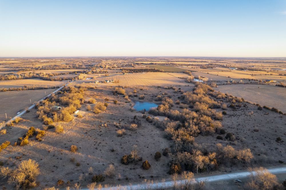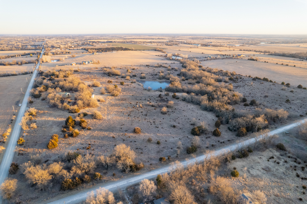 Located 3.5 miles east of Rose Hill, Kansas, sits this 39 +/- acres that would be a fantastic build site! The land sits at the corner of Southwest Tawakoni Road and Southwest 180th Street, both of which are well-maintained gravel roads. The entire perimeter is fenced with 4-5 strand barb wire and has a gated entrance along Tawakoni Road. There is a 30’x50’ barn with a dirt floor that offers a great start to a future homestead. The property is made up of native grasses with cedar and hedge trees, and a wet-weather creek lined with timber. The centerpiece of the property is a .75 acre pond, which offers countless opportunities! The land is littered with deer sign from trails to rubs to bedding areas, and offers many stand locations and hunting setups.