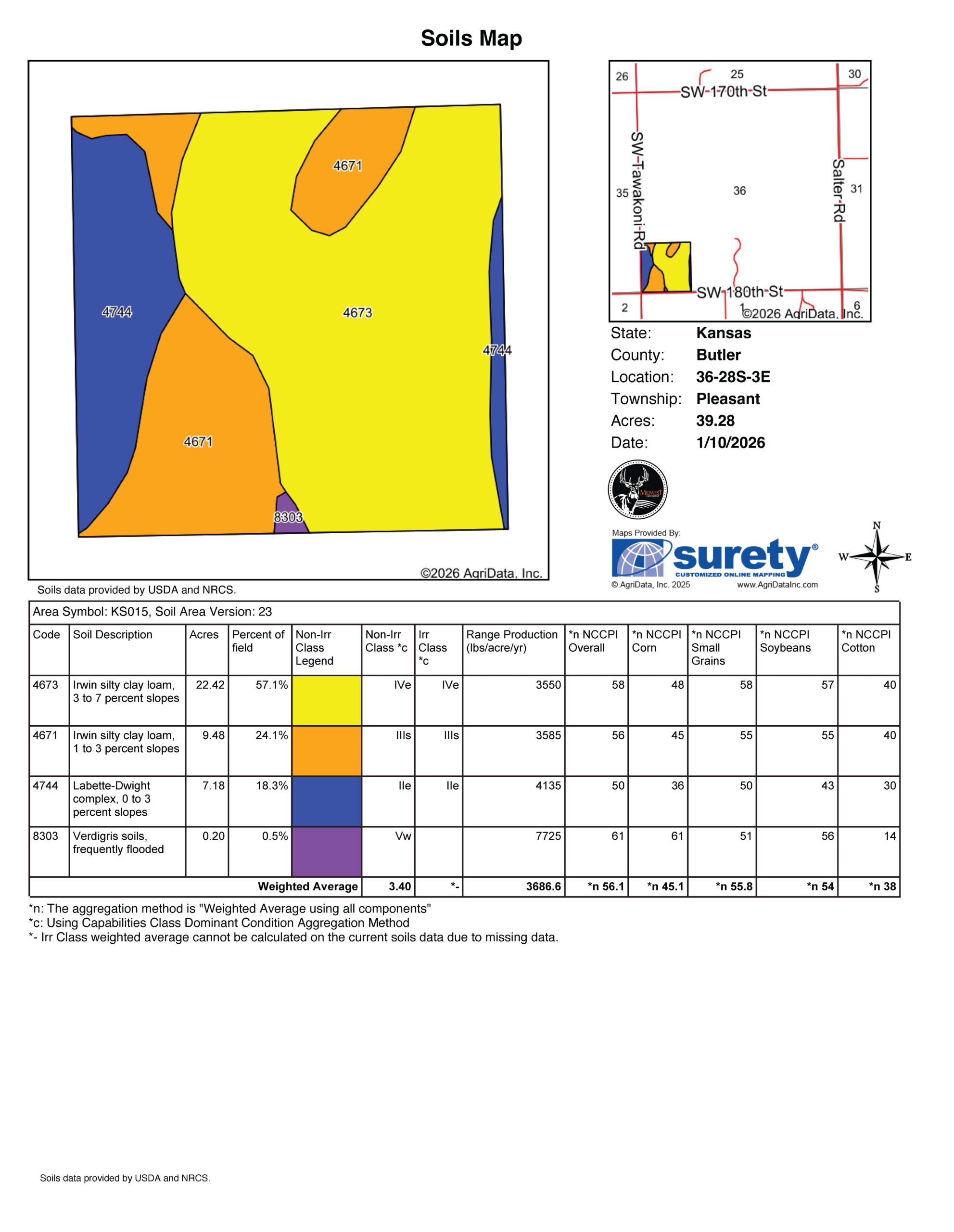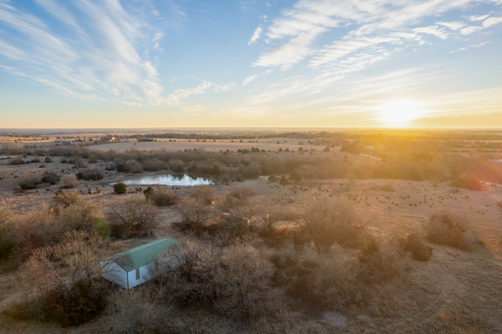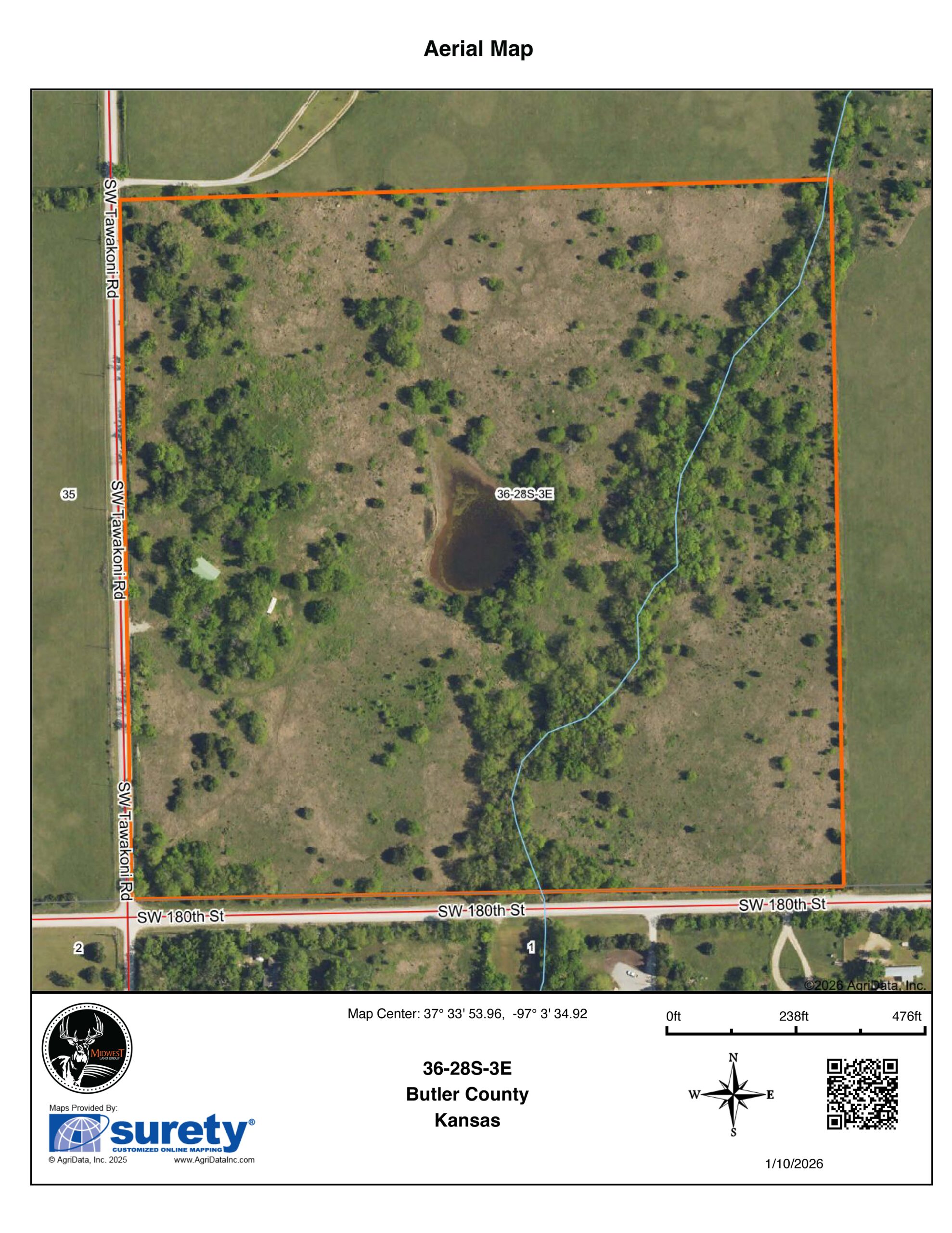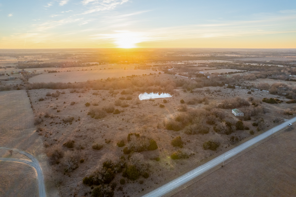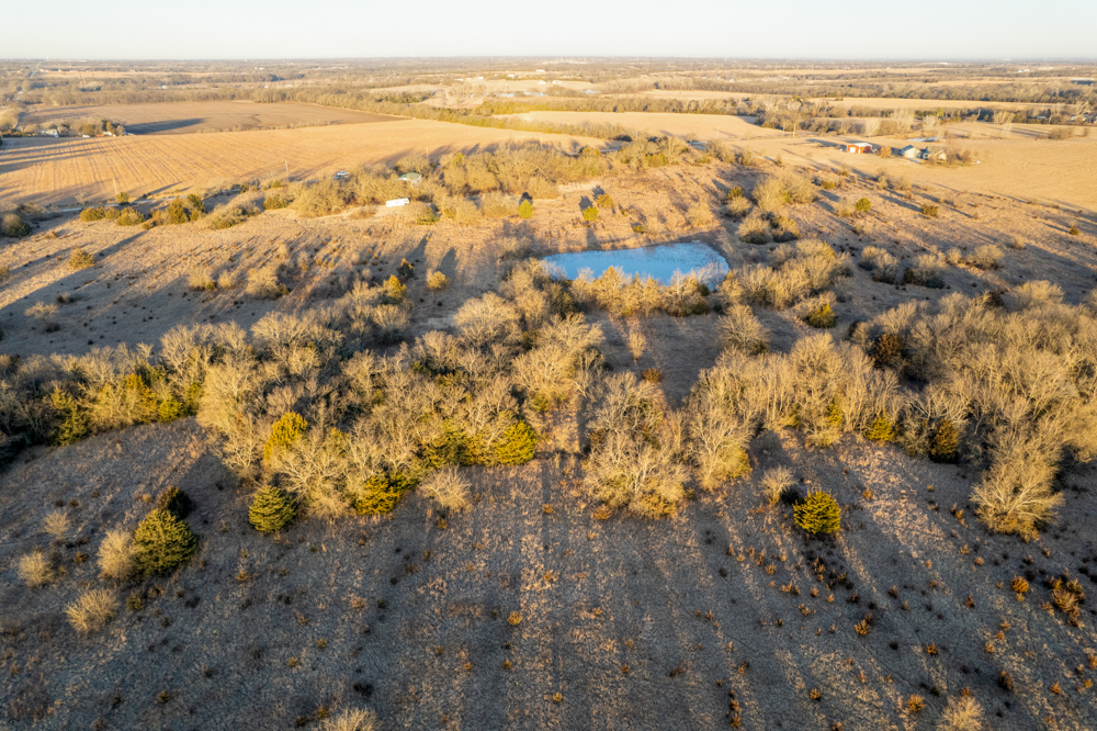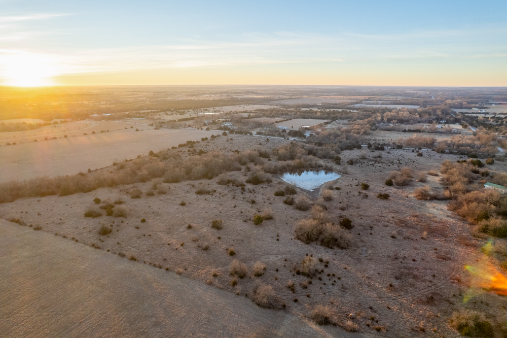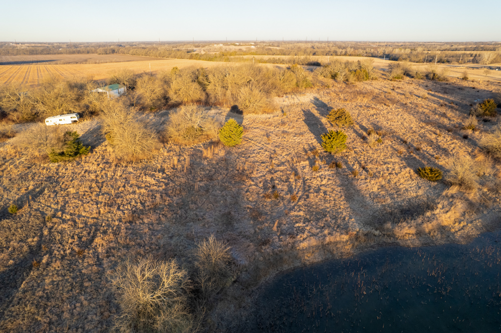 Located 3.5 miles east of Rose Hill, Kansas, sits this 39 +/- acres that would be a fantastic build site! The land sits at the corner of Southwest Tawakoni Road and Southwest 180th Street, both of which are well-maintained gravel roads. The entire perimeter is fenced with 4-5 strand barb wire and has a gated entrance along Tawakoni Road. There is a 30’x50’ barn with a dirt floor that offers a great start to a future homestead. The property is made up of native grasses with cedar and hedge trees, and a wet-weather creek lined with timber. The centerpiece of the property is a .75 acre pond, which offers countless opportunities! The land is littered with deer sign from trails to rubs to bedding areas, and offers many stand locations and hunting setups.