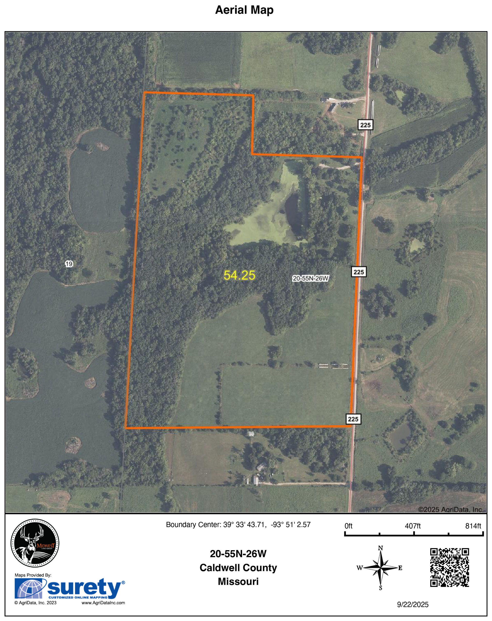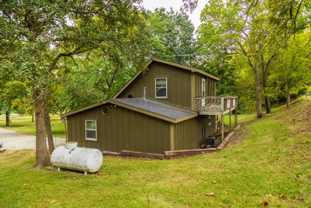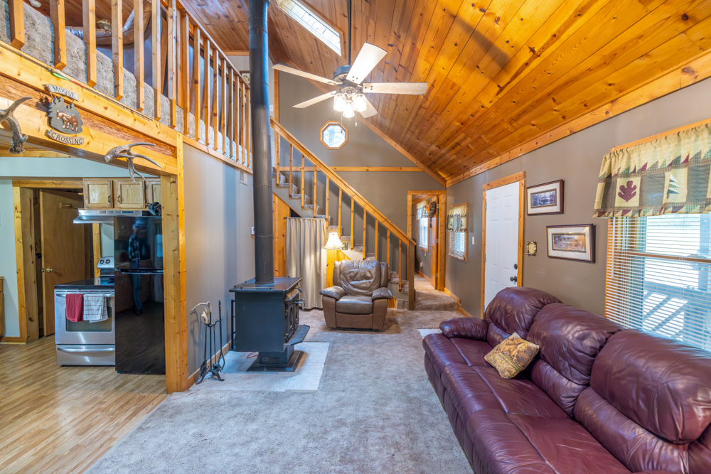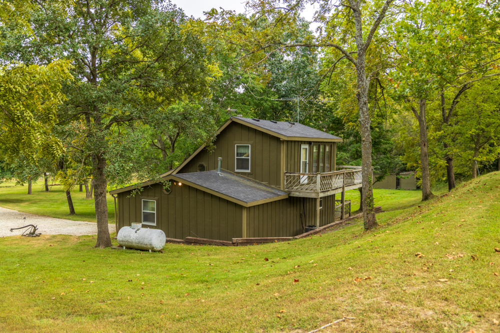 This 54.25 +/- acre property in Caldwell County has a lot to offer! Conveniently located an hour from Kansas City, this farm is very attractive if you are looking for a great recreational property with a nice place to spend the night. A large pond, good hunting, and plenty of established trails make this tract a must-see.As you enter the property, you are greeted by a perfect getaway cabin! The cozy cabin features a main bedroom, bathroom, full kitchen, and living room. A large loft area serves as an additional bedroom, as well as another non-conforming bedroom in the back. The cabin is approximately 950 square feet and is complete with rural water, electric, and a septic system. Enjoy the back porch views overlooking the 3-acre lake and country solitude.