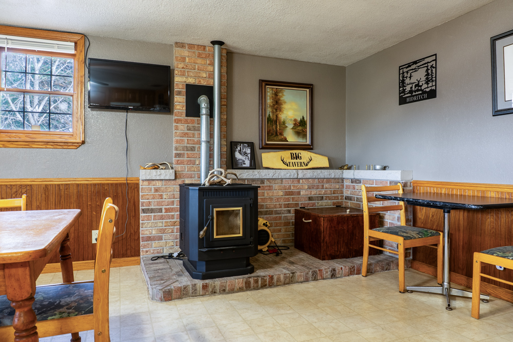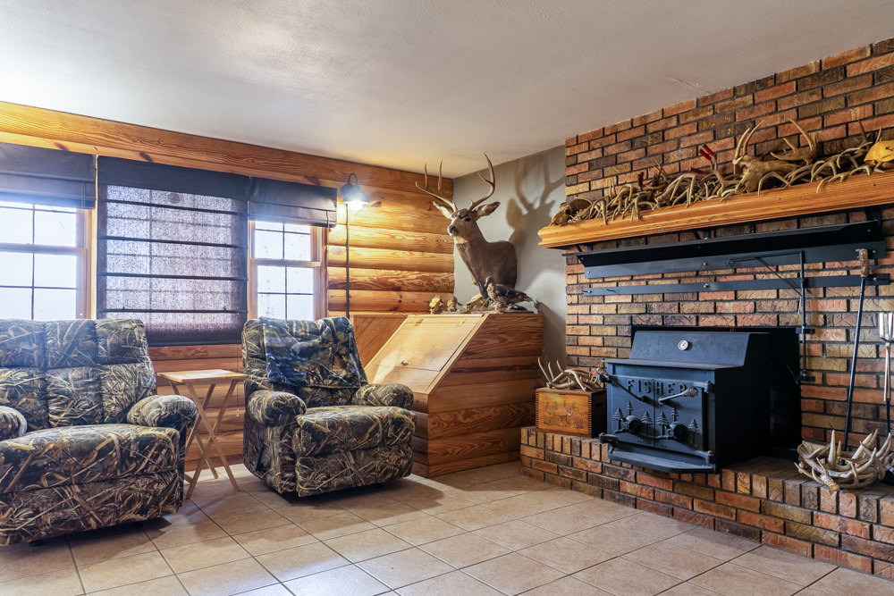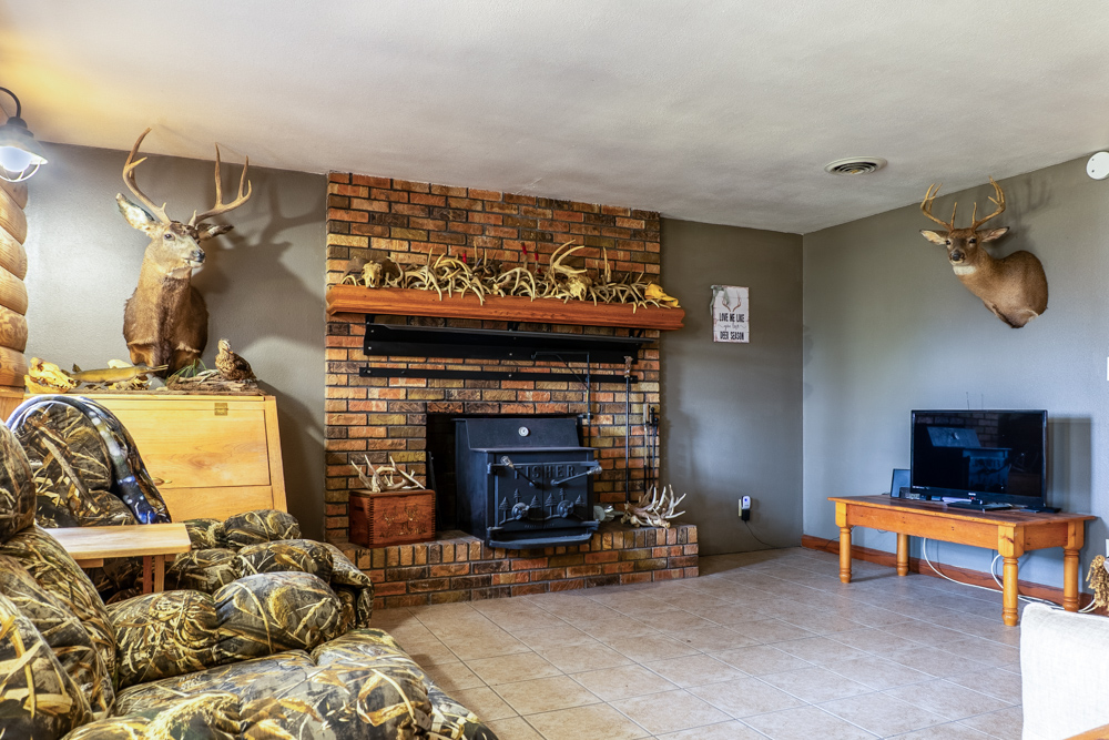 - Living room with wood-burning stove