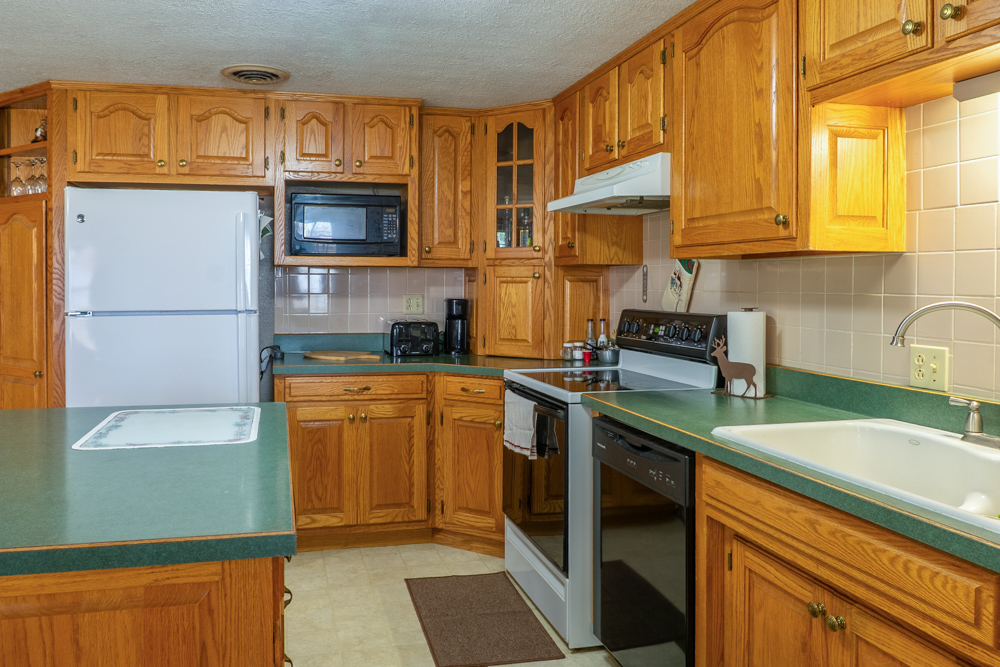 - Custom oak cabinetry