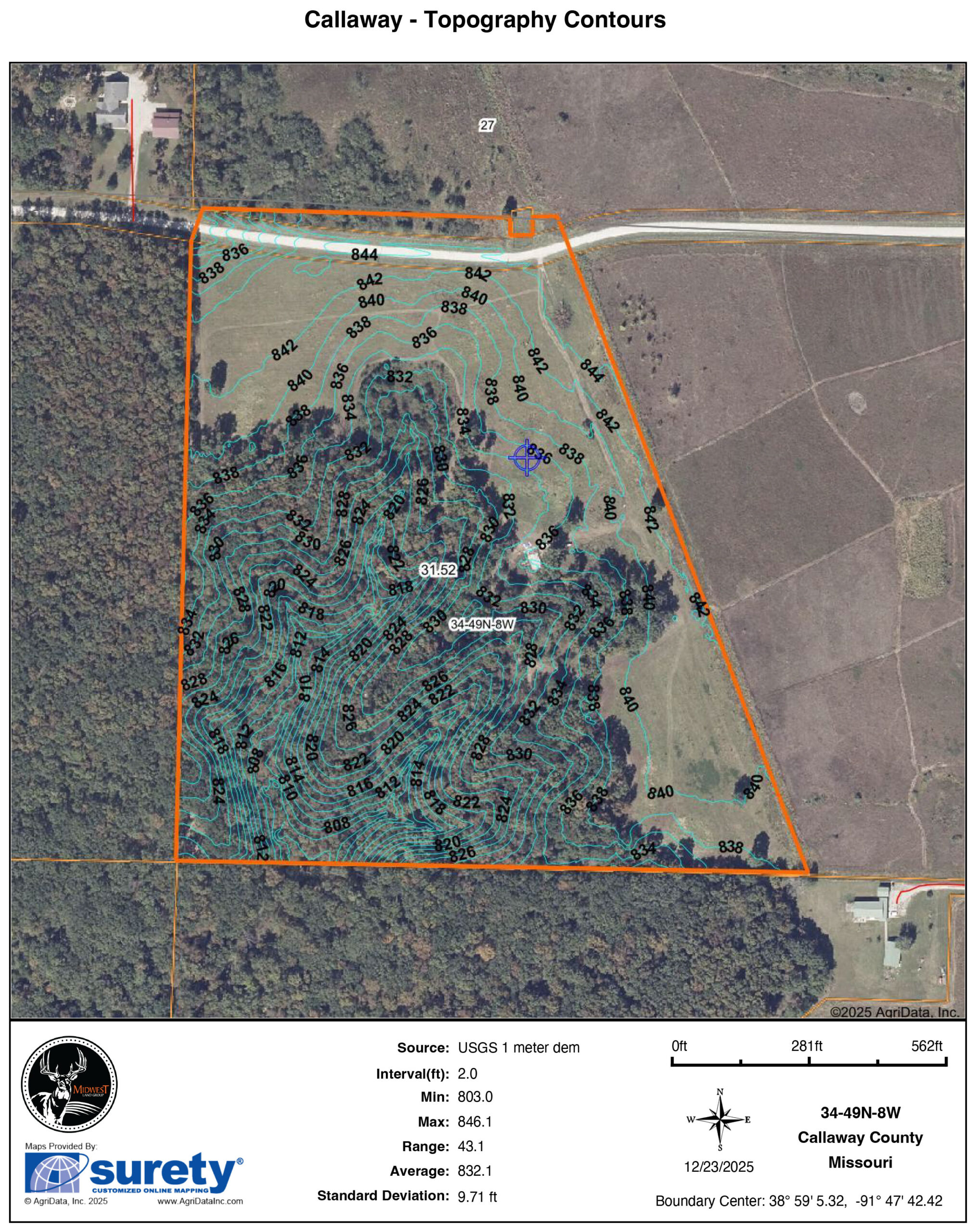 Several locations along the timber are well-suited for developing strategic food plots to further enhance the property’s hunting potential.
