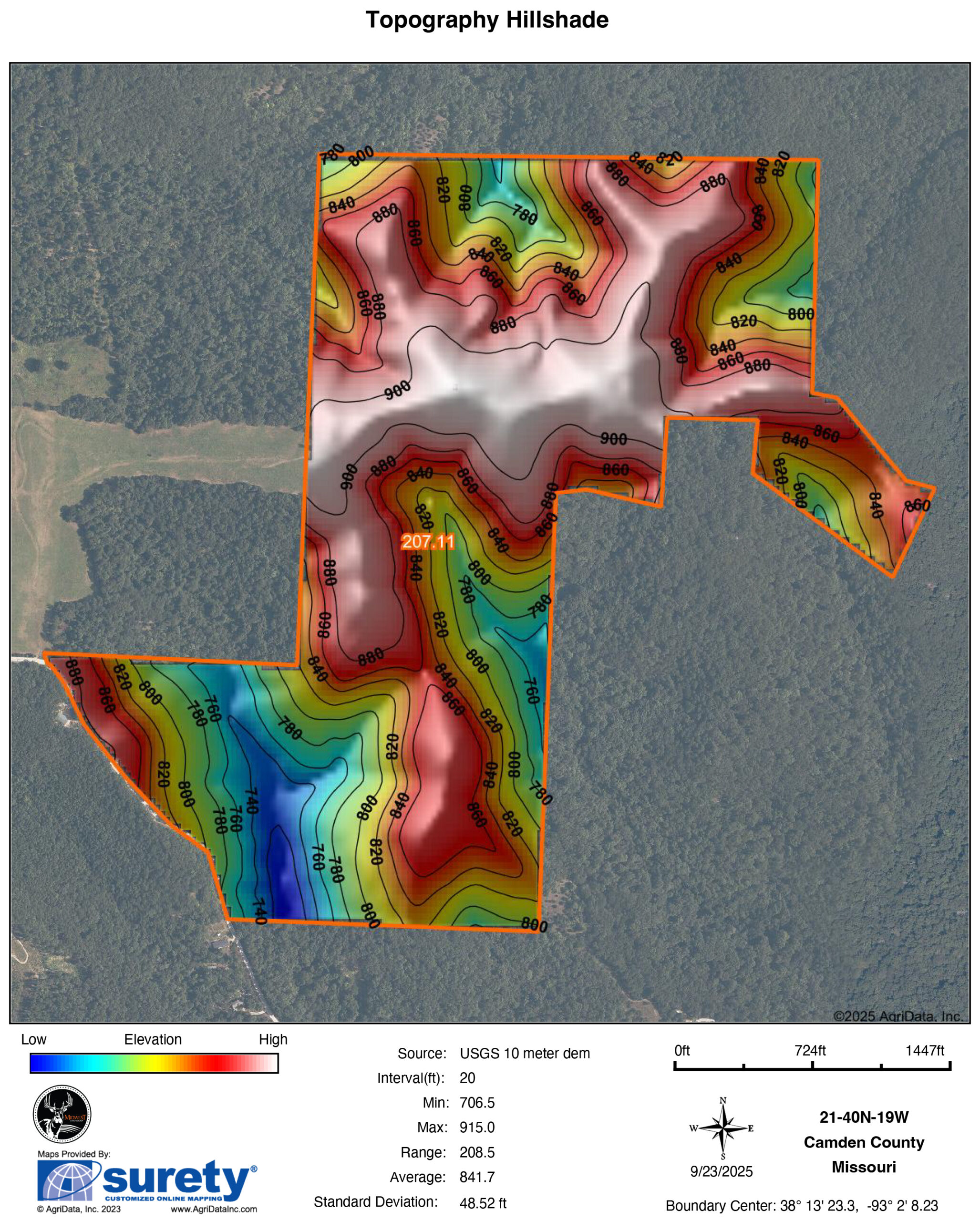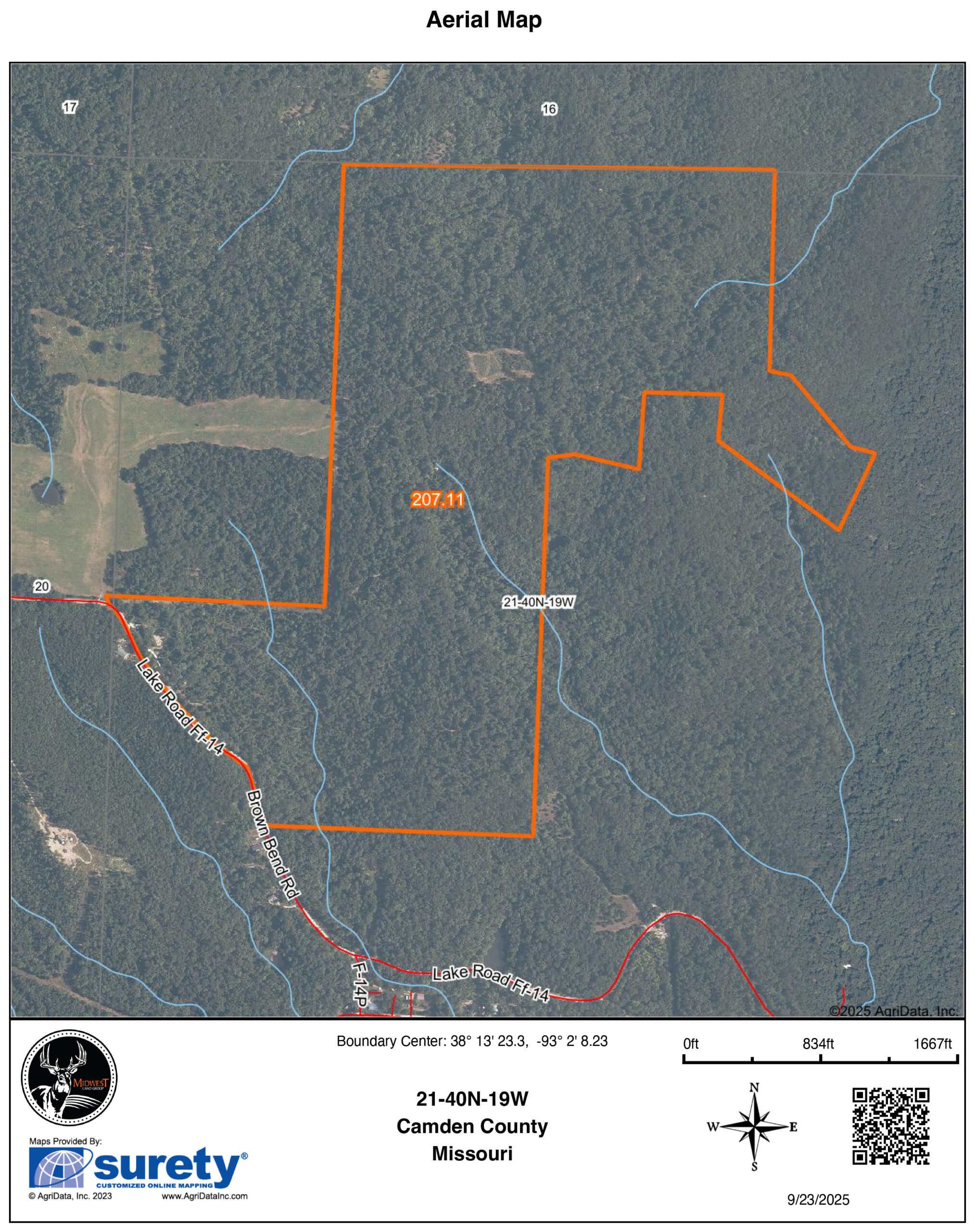 Nestled in the rolling hills of northwest Camden County and very close to Lake of the Ozarks, this expansive 207 +/- acre property offers a rare combination of seclusion, accessibility, and natural beauty. Located 27 miles east of Warsaw, 12 miles north of Climax Springs, and only 1 mile from Brown Bend public access boat ramp on Lake of the Ozarks, you won’t have any problem finding time to get in a morning and evening hunt and a day out on the water. This tract is ideal for outdoor enthusiasts, hunters, or those seeking a private retreat with an extraordinary amount of opportunities. The property boasts paved road frontage along its western boundary, offering year-round access. Towering stands of mature hardwood timber blanket the land, presenting both aesthetic appeal and potential income from future logging. This 207 +/- acre property supports abundant wildlife, making it a premier destination for deer and turkey hunting, further enhanced by a small wildlife pond that draws in game throughout the year. The rolling topography and large number of acres would support several hunters and many stand locations. Navigating the property is made easy by using the established trail system. Build your dream home or perfect getaway cabin located just off the paved road, where 200-amp electric service and a deep well are already in place. Whether you’re looking for a recreational haven or just a peaceful getaway location near the Lake of the Ozarks, this property offers it all.Property Features