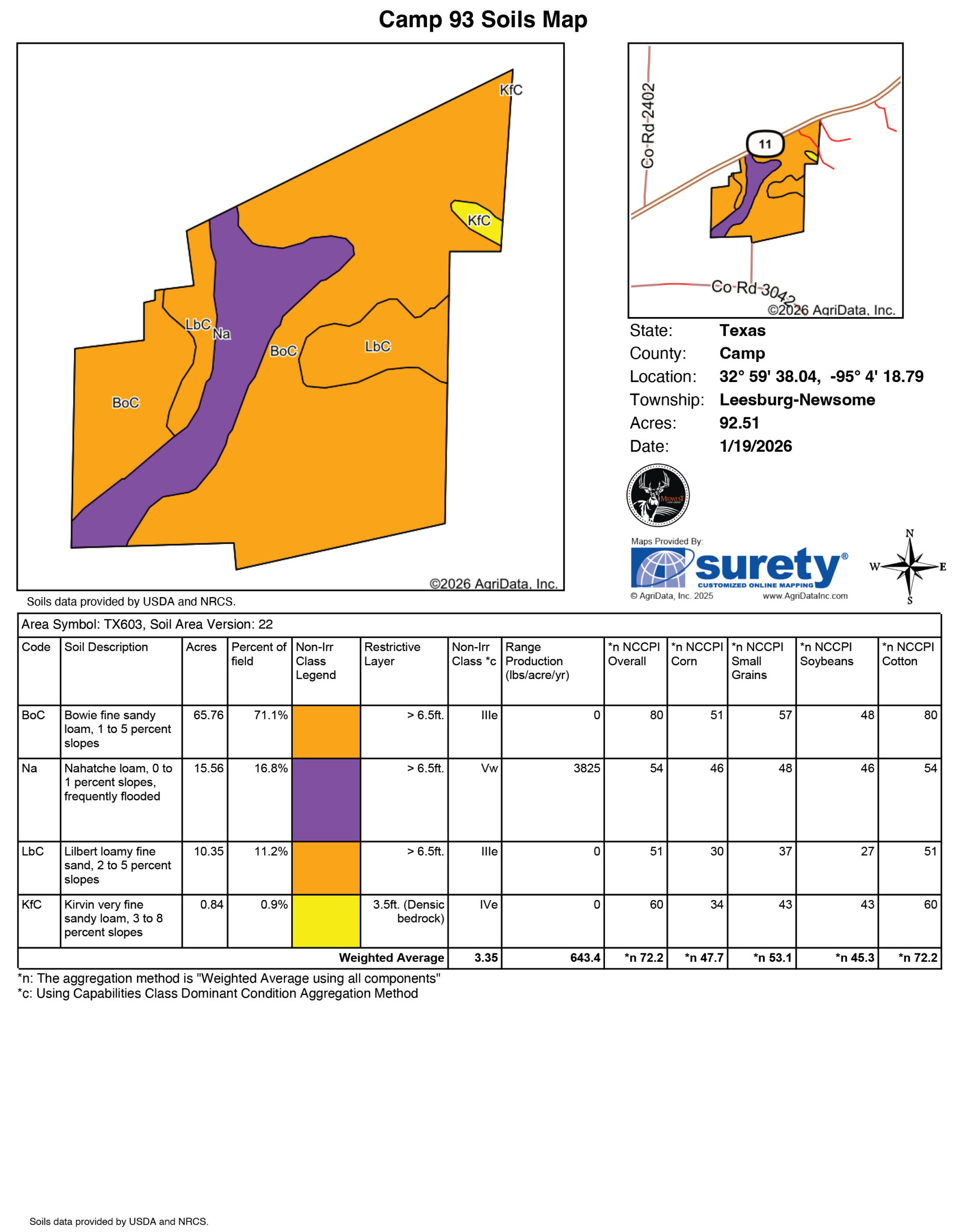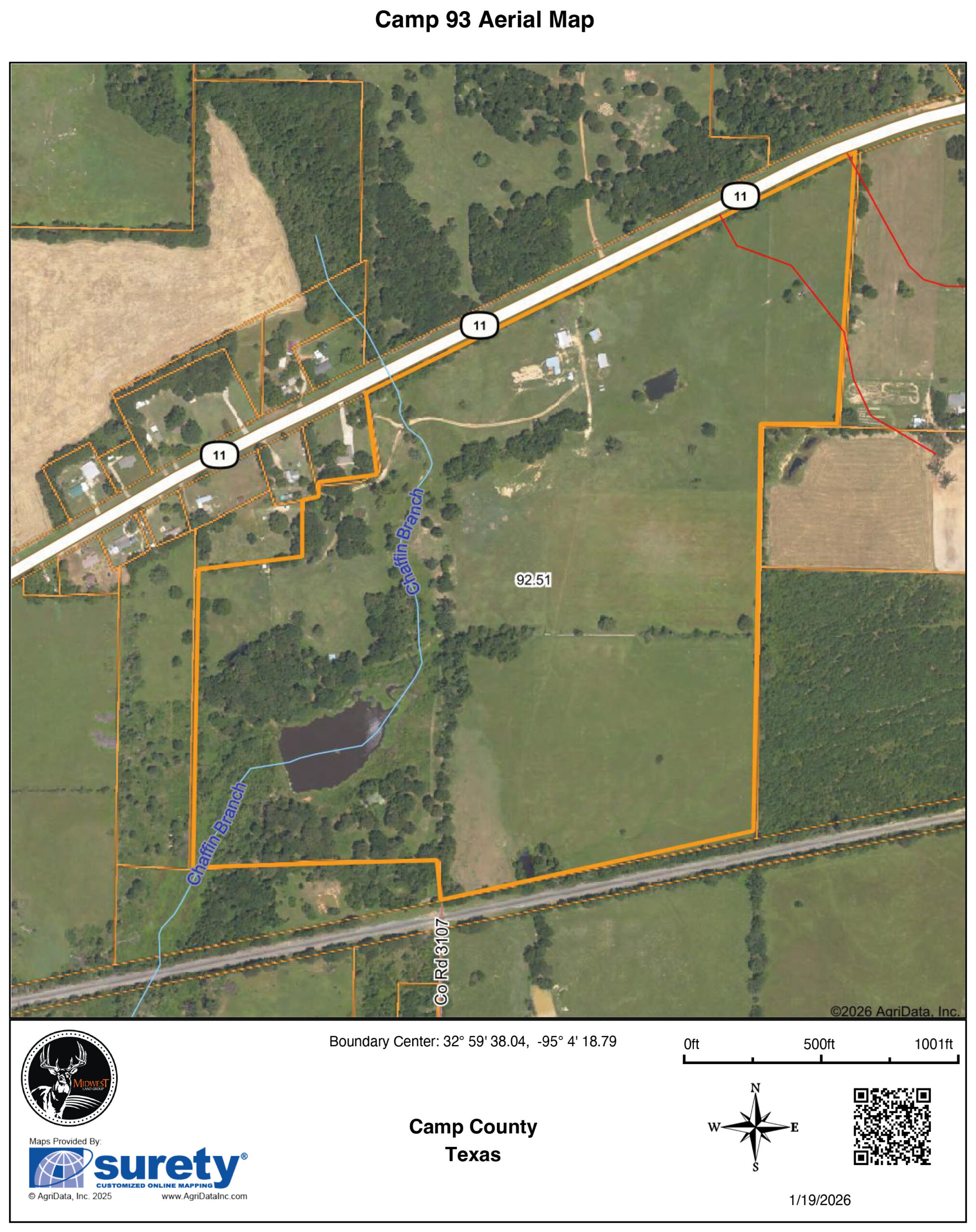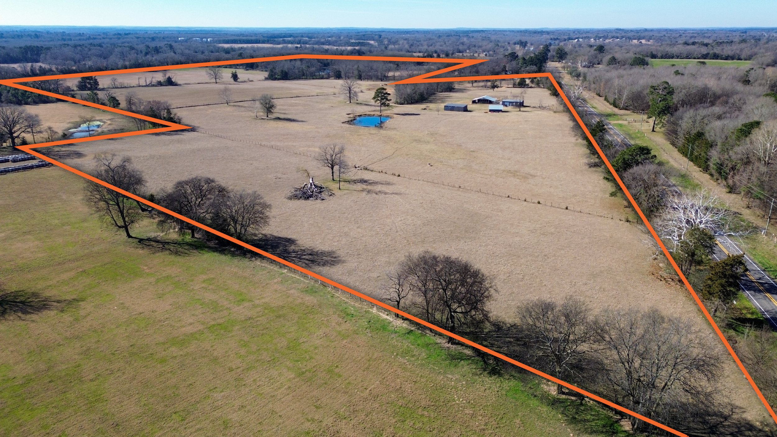 This 93 +/- acre working cattle ranch in Pittsburg, Texas, is well-equipped for efficient livestock operations and excellent hunting opportunities. Approximately 80% improved pasture with native grasses is complemented by 20% wooded acreage, providing natural shade, cover, and prime habitat for abundant whitetail deer and other wildlife.The property is fully perimeter-fenced and cross-fenced with swing gates, allowing for effective pasture rotation and easy herd management. Reliable water sources include three spring-fed ponds and a flowing creek. Interior ranch roads with culverts provide full access throughout, while extensive State/US Highway 11 frontage offers outstanding accessibility.