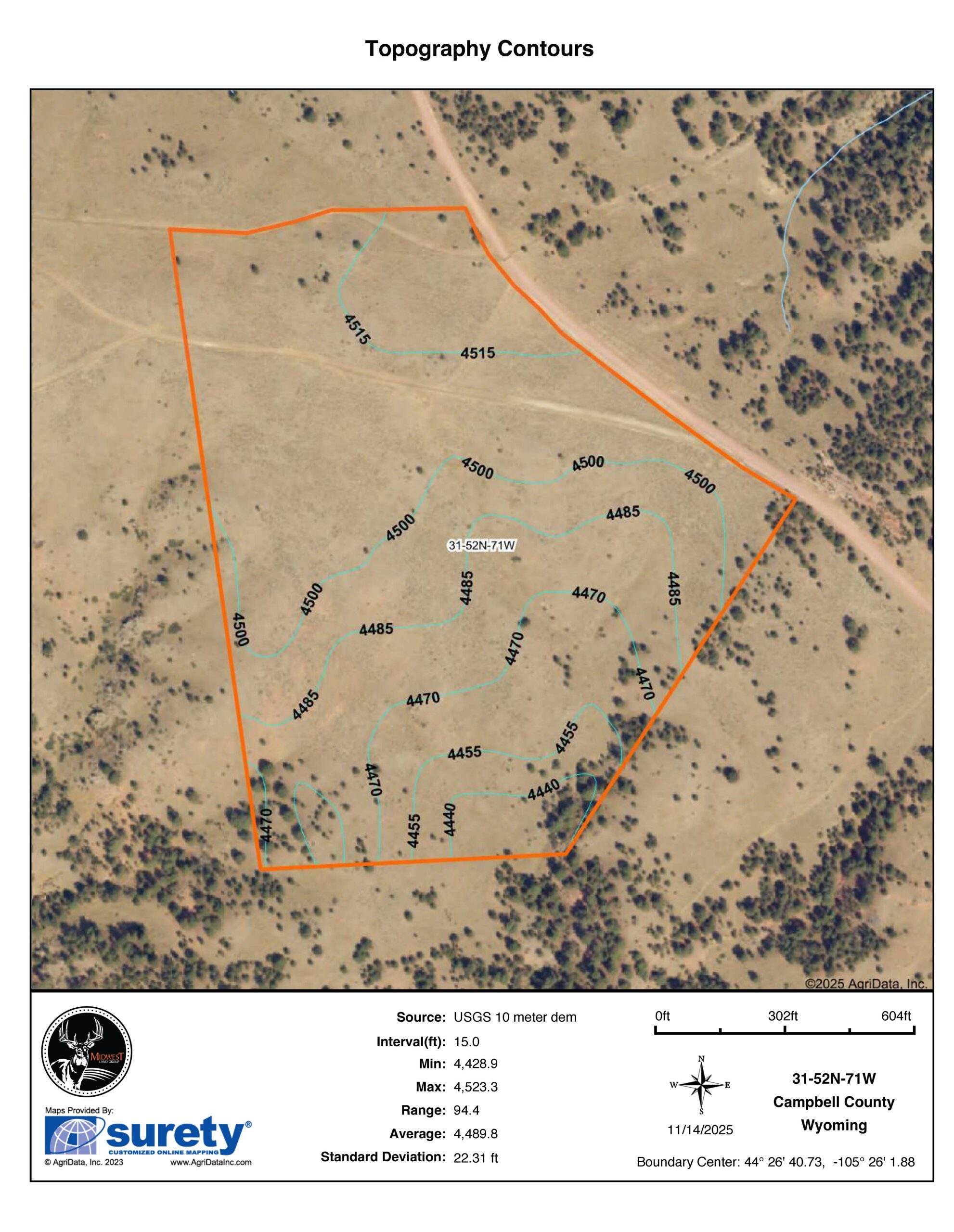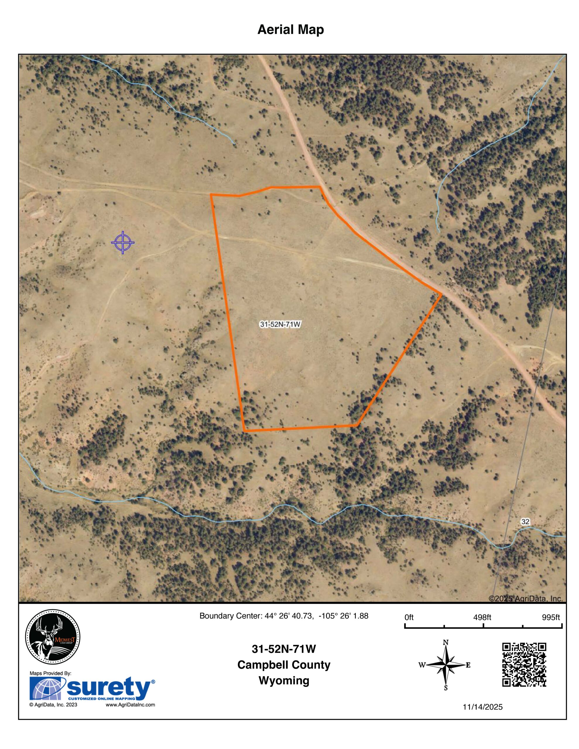 This 35 +/- acre property offers exceptional views of the Bighorn Mountain Range, with scattered pines along the southeast and southwest corners. Comprised mostly of open grassland with surrounding views, this tract proves itself as a build site with great pasture opportunity.Located 12 miles north of Gillette, Wyoming, on Broad Axe Ranch, Tract B6 is the ultimate out-of-town living experience, still in proximity to modern amenities. With 320 yards of well-maintained dirt road frontage, this property is easily accessible. A two-track dirt road runs from the east boundary, clear to the west corner. Looking south on this property, pine-covered hills roll as far as the eye can see. To the west, the Bighorn Mountain Range is prominent, sitting on the horizon. Minor covenants are in place; please contact the listing agent for more information.