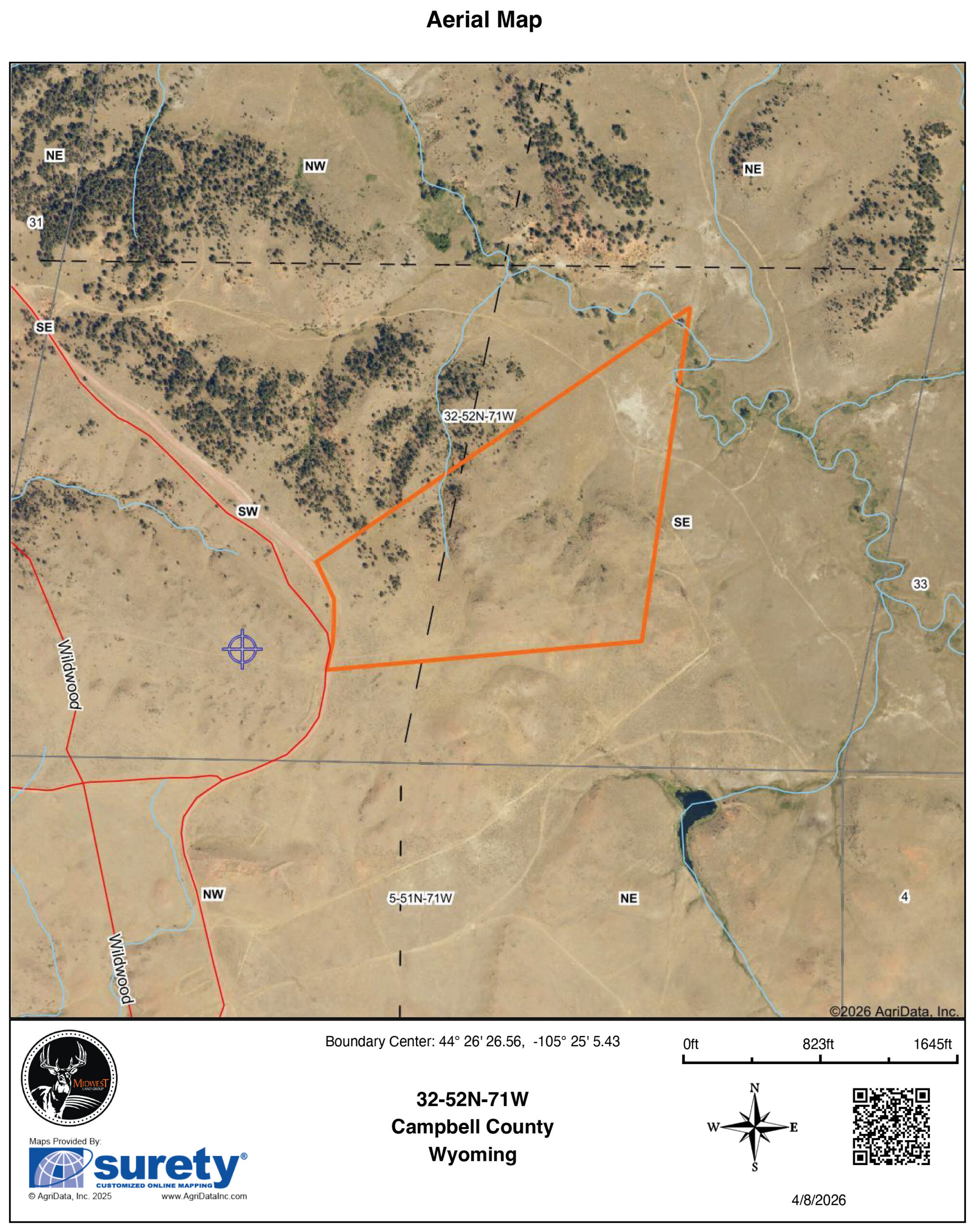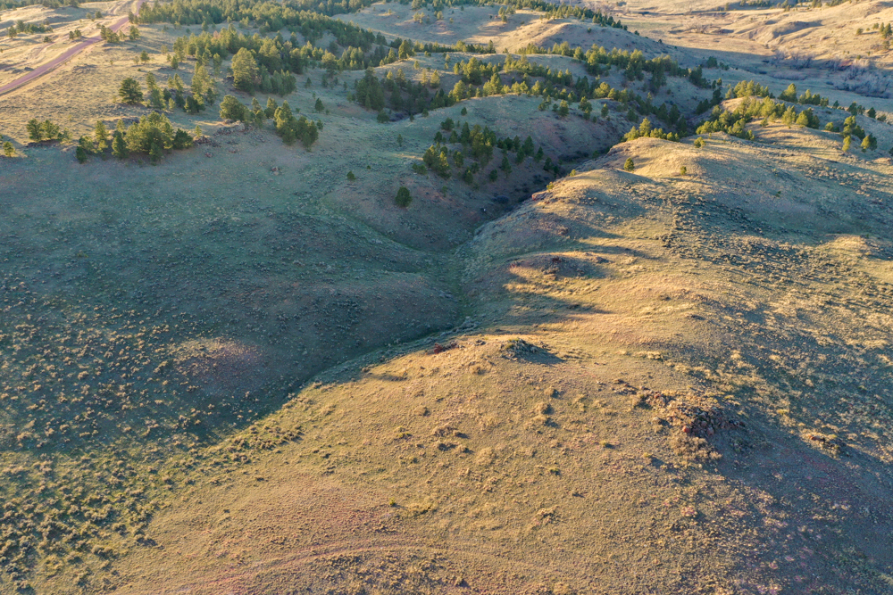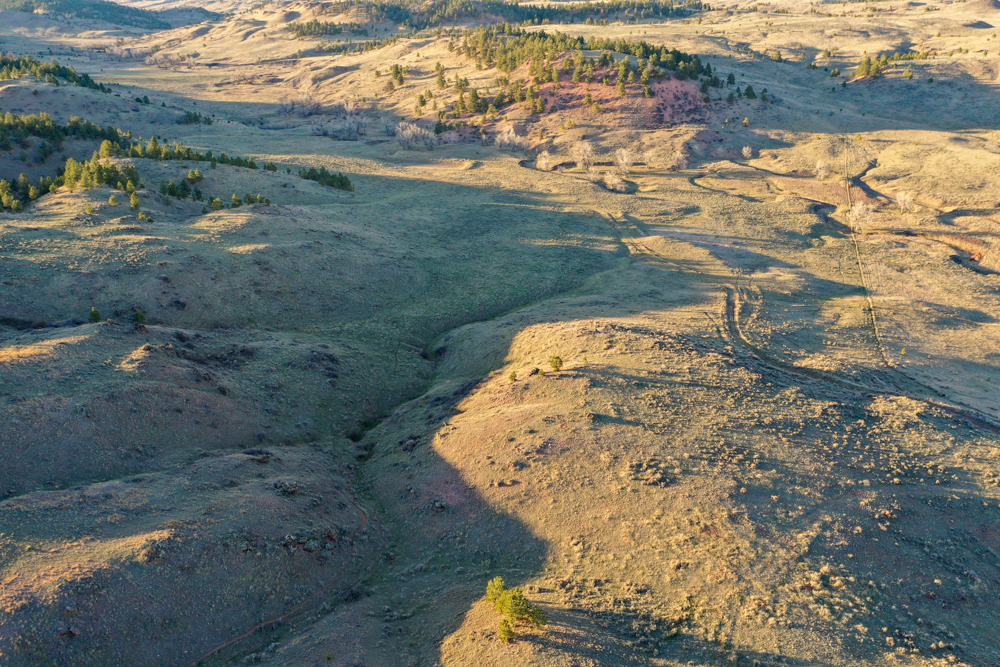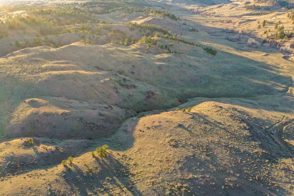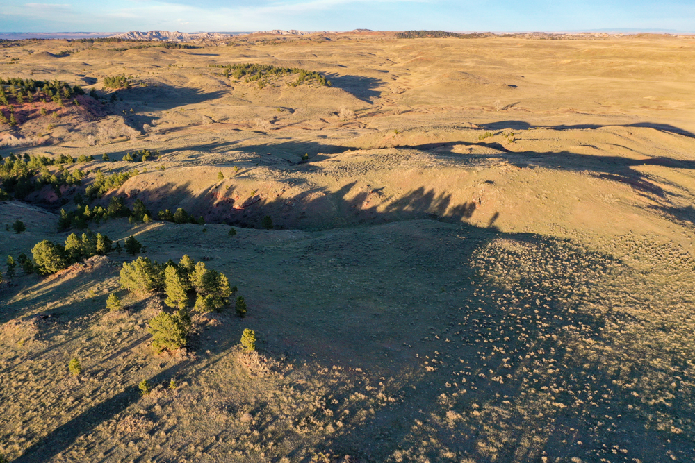 This 58-acre tract offers a clean, usable layout with a touch of character throughout. Scattered pines and native sagebrush define the higher ground, giving the property a classic Wyoming feel while still maintaining wide-open usability. The terrain rolls gently from a sagebrush-covered plateau down into a flat, grassy bottom lined with cottonwoods— creating a natural transition.Located just 12 miles north of Gillette, the property is easily accessed by a year-round maintained dirt road, with an established two-track running the full span of the land for added convenience. Several rock outcroppings are scattered across the property, adding texture and a bit of rugged character to the otherwise smooth, rolling landscape.