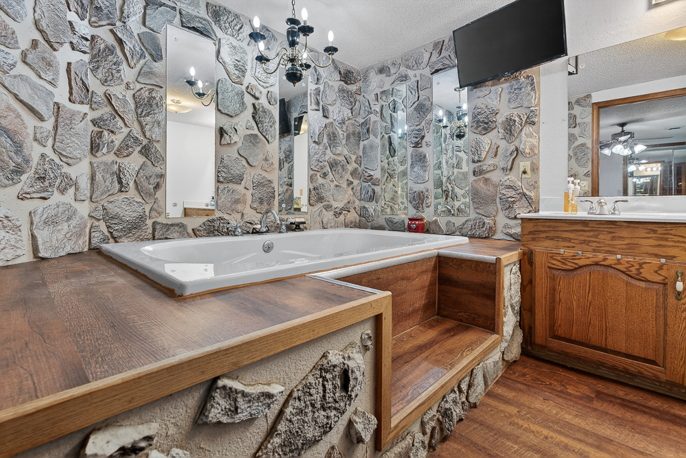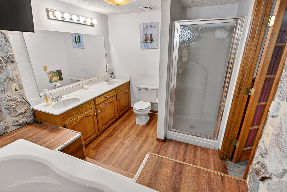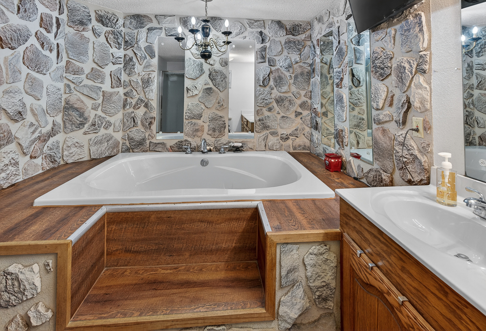- Large, private master suite with a spa tub and separate shower
