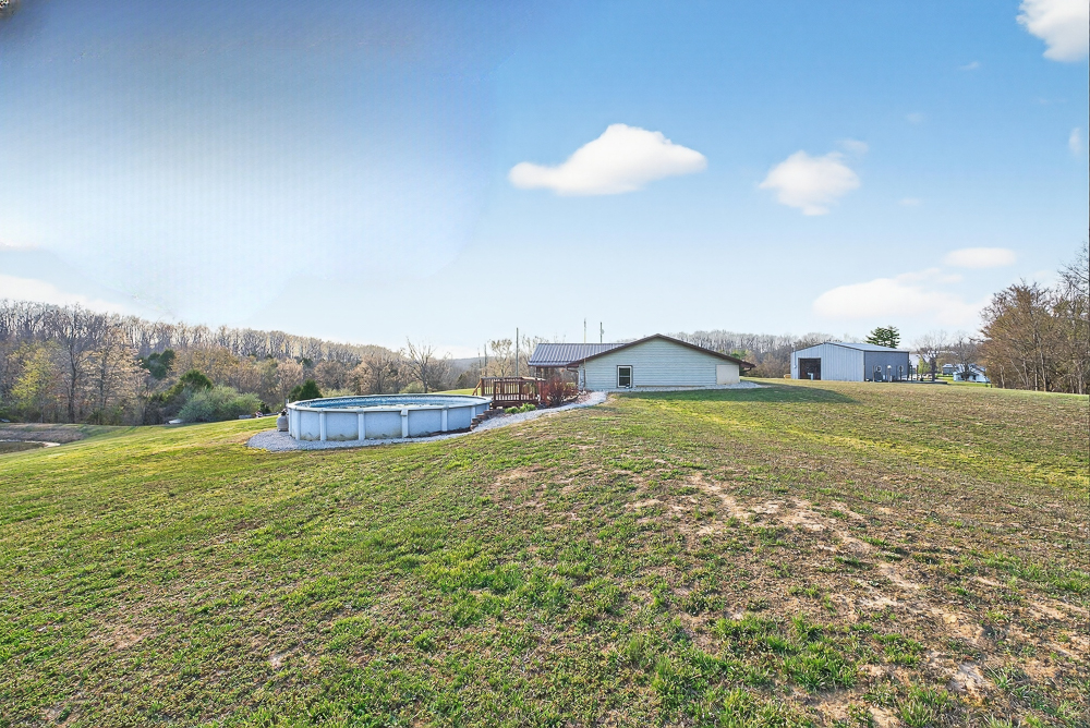 This 35 +/- acre rustic farmstead is a fantastic blend of functional infrastructure and natural beauty in Whitewater, Missouri. Surrounded by working farms, wide-open skies, and local Missouri Conservation Department destinations for fishing and exploring the outdoors, this property offers a peaceful, self-sustaining lifestyle with a private well and premier amenities already in place. The 1,693 square foot earth contact residence is both comfortable and energy efficient. While nestled along a blacktop county road, this home is spacious with a well-insulated floor plan designed for year-round comfort and low utility costs. This 3 bedroom, 2 bathroom home offers both a formal dining room, living room, and a separate family room. Designed for connection, the kitchen features a breakfast bar that opens directly into the family room, creating an inviting space for casual dining or hosting. Take in spectacular Missouri sunsets from the porch overlooking the back field & stocked pond, or enjoy the above-ground pool and deck during the summer months.This farm is a haven for outdoor enthusiasts & nature lovers. Its diverse landscape includes pastures ready for grazing or hay production, along with two stands of prospective timber creating a prime habitat with plentiful game and wildlife frequently seen across the acreage. The property is uniquely equipped with two water sources, a smaller pond located by the post and beam barn, and a second, well-established, stocked pond complete with a pavilion—the ultimate centerpiece for fishing and quiet afternoons by the water. Take advantage of the trail system on the perimeter and interior of this property to traverse all its offerings.