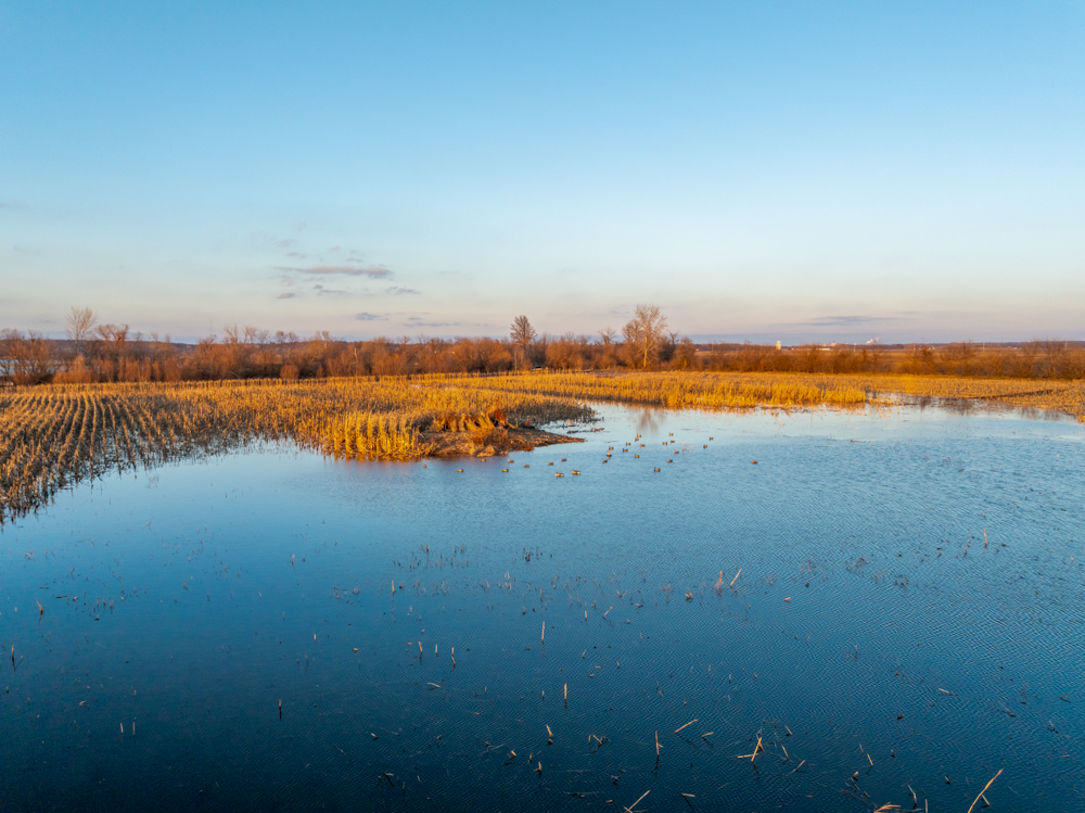 This farm is positioned to take full advantage of those migrating birds. The property sits directly west of Grand Pass, and features flooded corn and moist soil, ideal loafing and feeding habitat for the birds leaving Grand Pass refuge to feed and trading back and forth between the other 3 refuges. Surrounded by prime habitat, the Missouri River bottoms, and close proximity to waterfowl refuges, this tract naturally funnels birds through the area, making it a highly desirable location for serious waterfowl hunters.