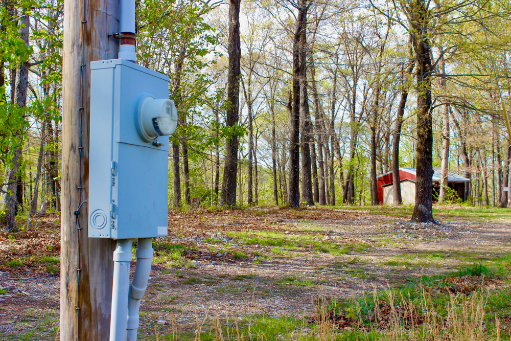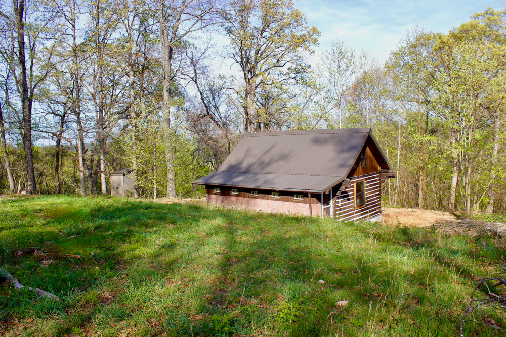 At the center of the property sits a charming 384 square foot cabin with a loft, ideal for weekend stays or a basecamp for outdoor adventures. The property is already equipped with a deep well tapping into the Roubidoux aquifer, septic system, and electric service, providing the essential infrastructure needed for comfortable living or expansion.
