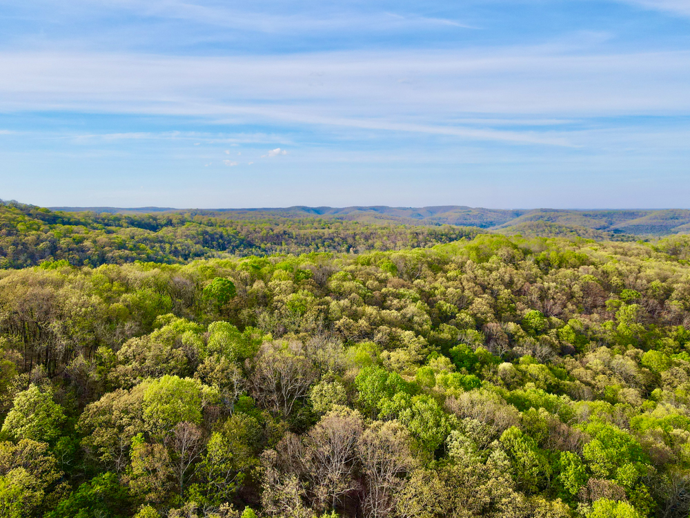 The terrain showcases a beautiful mix of topography and usable ground, with mature oak, hickory, and walnut timber throughout. Multiple additional build sites are scattered across the property, many offering privacy and scenic views. A unique cave feature adds to the property’s character and recreational appeal.