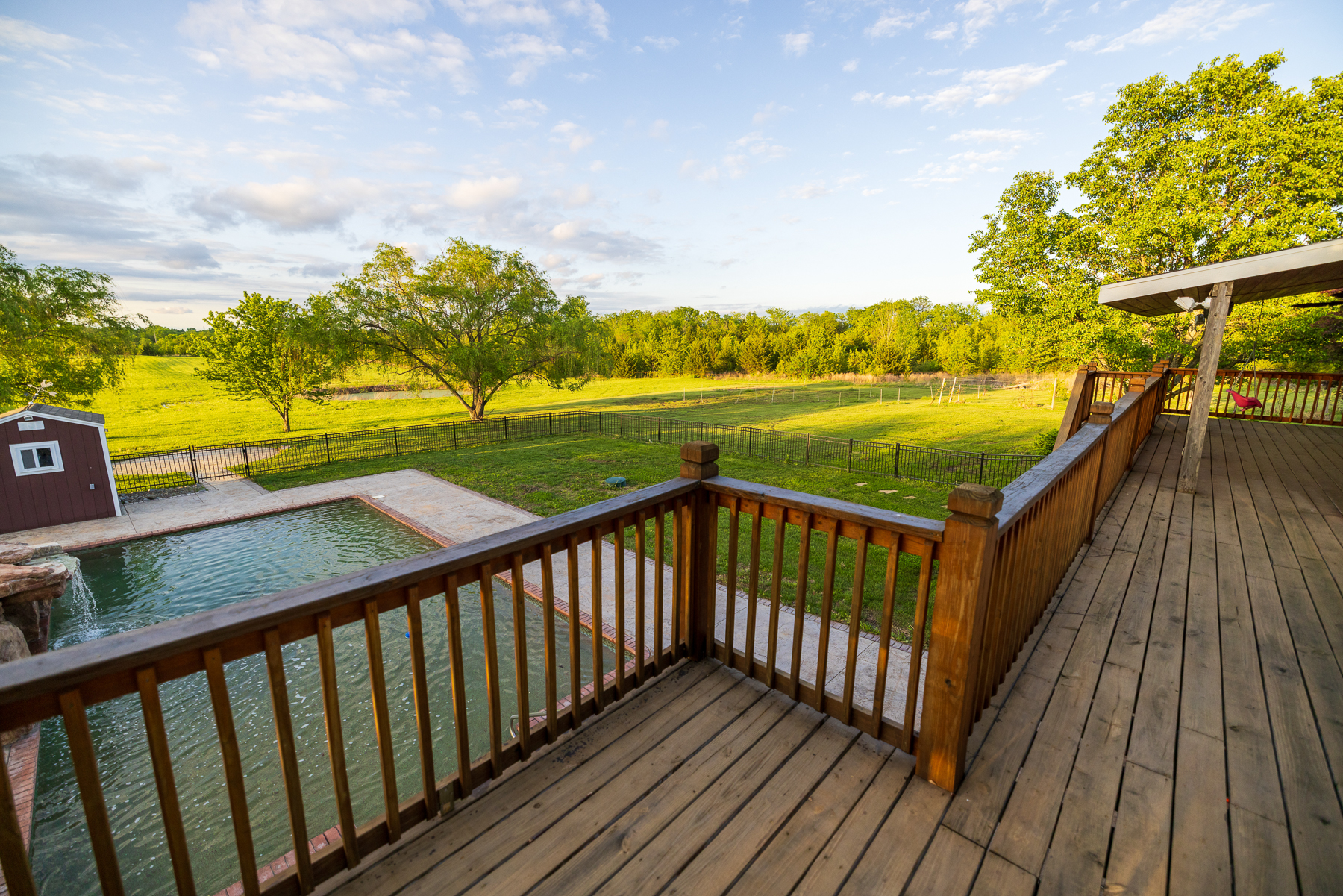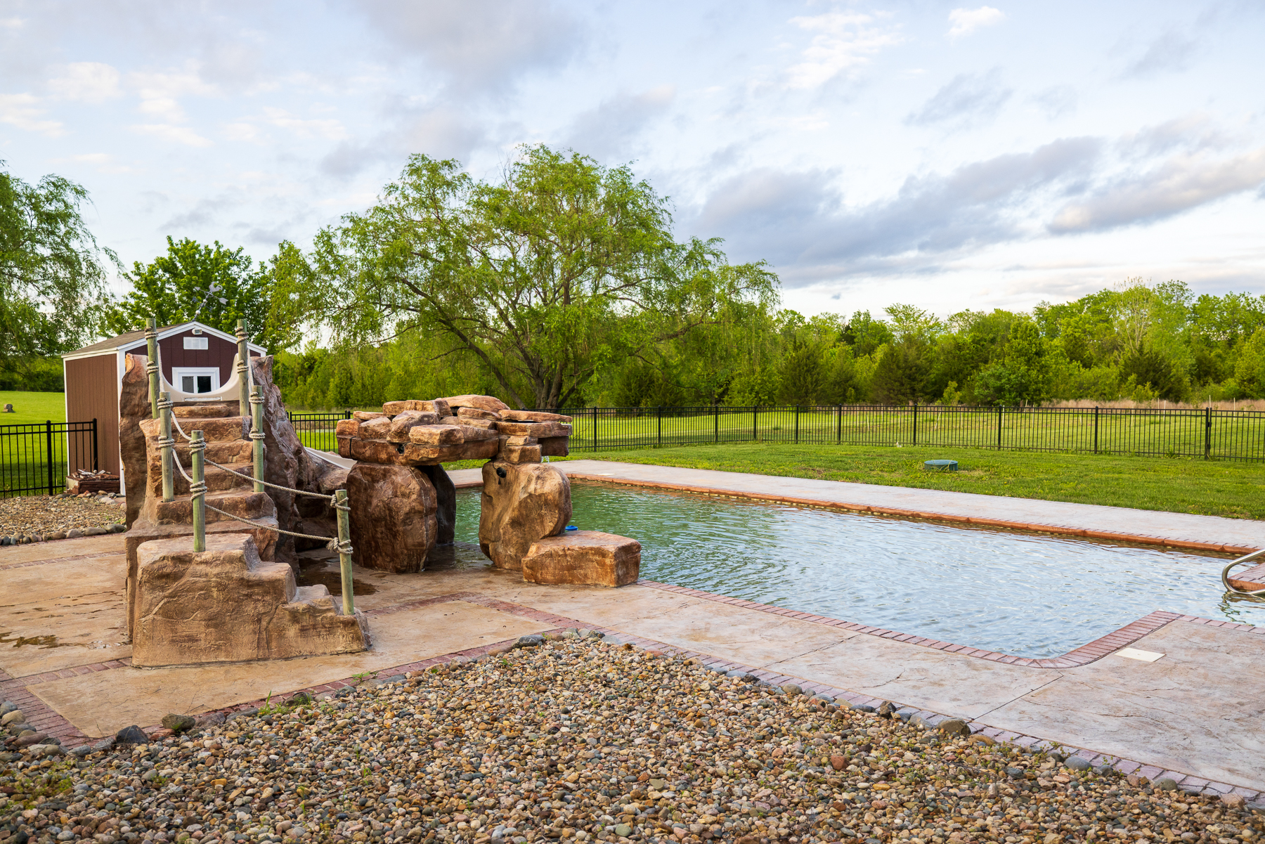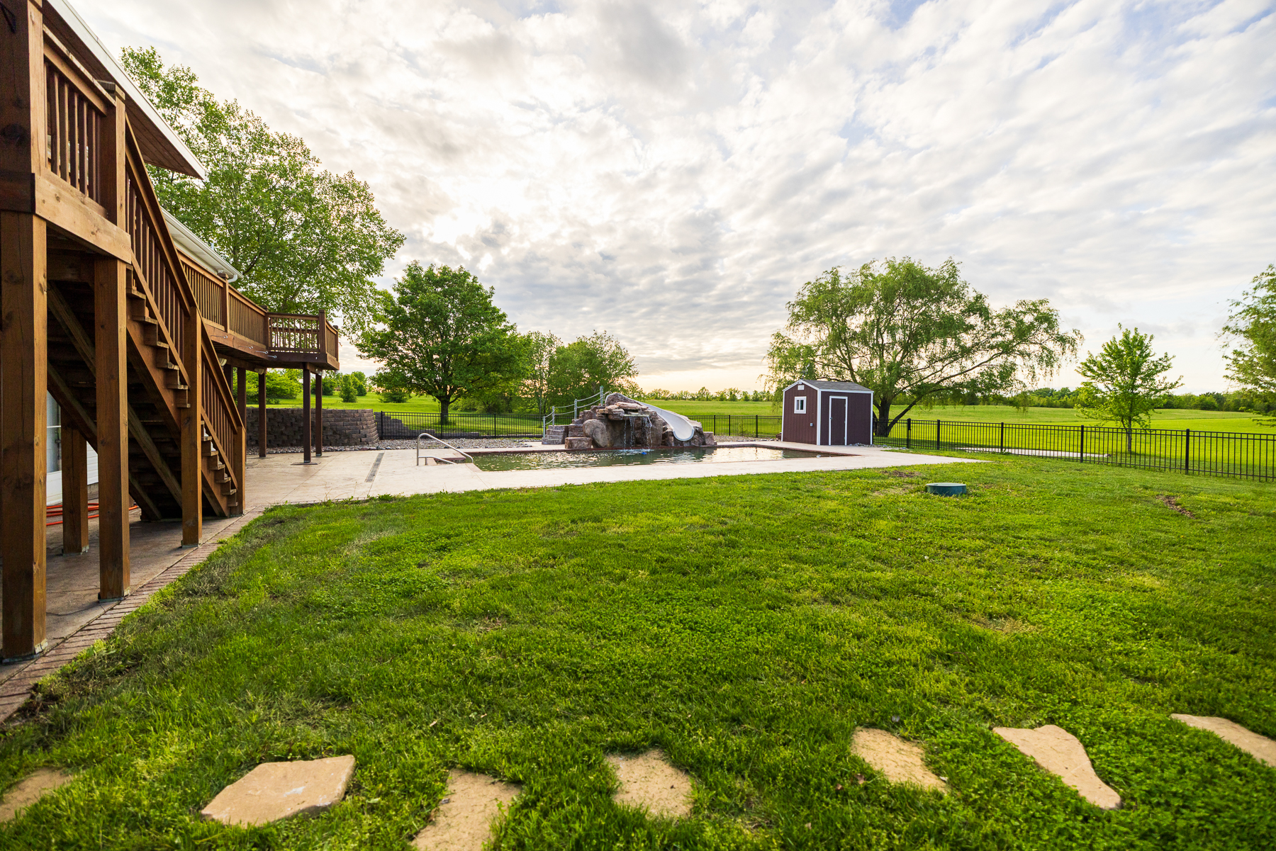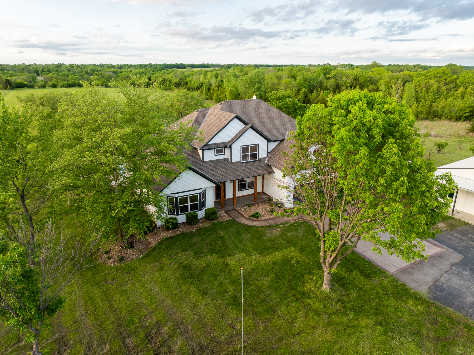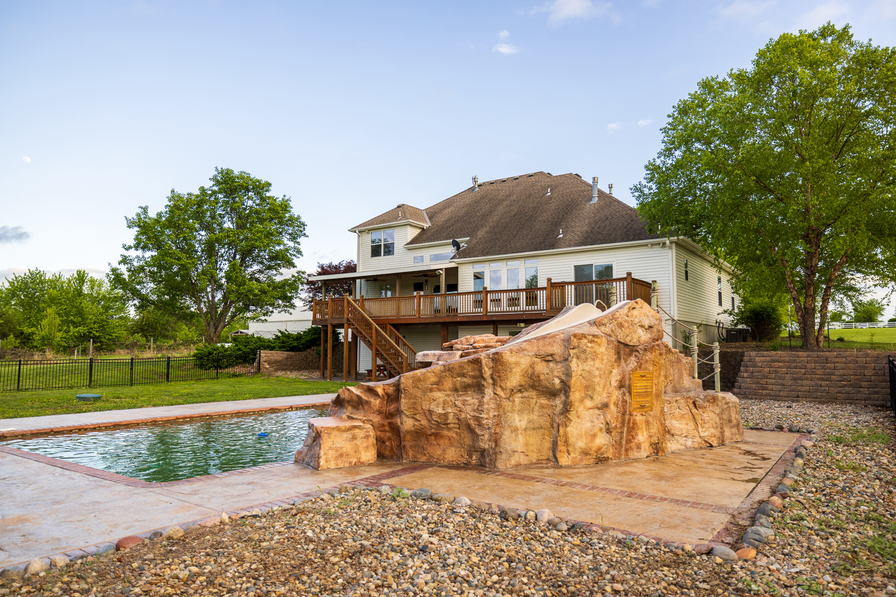 Here’s your chance to live and roam on 10 +/- acres just across the Jackson County line in Cass County, Missouri. This amazing home on acreage is located just 20 minutes south of Lee’s Summit along a blacktop road and only a half mile off Highway 291. Talk about a prime location! You will fall in love with the 300+ foot paved driveway access to the house that sits perfectly overlooking the property. Enjoy the sunrise and sunset views from the front porch or back deck. Most of the property consists of open pasture ground that offers a blank canvas with so many possibilities. The driveway is lined with mature oak trees and several nice shade trees, along with landscaping surrounding the house. Also, there is a gardening area complete with established fruit trees, grape vines, and a chicken coop.The 4 bedroom (plus 1 non-conforming), 4.5 bathroom house was built in 1999 and offers plenty of space for the family and entertainment. It’s a must-see! The main level features a living room with a fireplace, vaulted ceilings, an oversized eat-in kitchen, an office, and a massive master suite. The upstairs includes 3 spacious bedrooms, 2 bathrooms, and a large play area. The finished walkout basement is complete with a full kitchen, large living area, bathroom, non-conforming bedroom, safe room, washer/dryer hookups, and plenty of storage space. Don’t forget about the incredible deck off the main level with amazing views and a covered patio underneath. It gets even better with the resort-style swimming pool with a slide and waterfall. This is the perfect setup to relax or entertain!