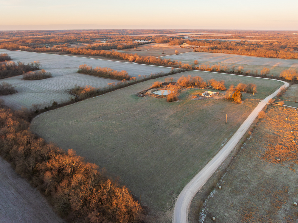 Perched above the scenic South Grand River bottoms, this exceptional 20 +/- acre tract offers a rare combination of stunning views, build-ready infrastructure, and recreational appeal. With gently rolling terrain and expansive sightlines, the property features multiple outstanding homesites perfectly positioned to take in the surrounding countryside.The land is covered in quality grass, making it well-suited for hay production or a hobby farm setup. A newly constructed pond enhances both the aesthetic and functional value of the property, providing a reliable water source and attracting local wildlife. Recent improvements include newly poured basement walls - giving buyers a valuable head start on building their dream home.
