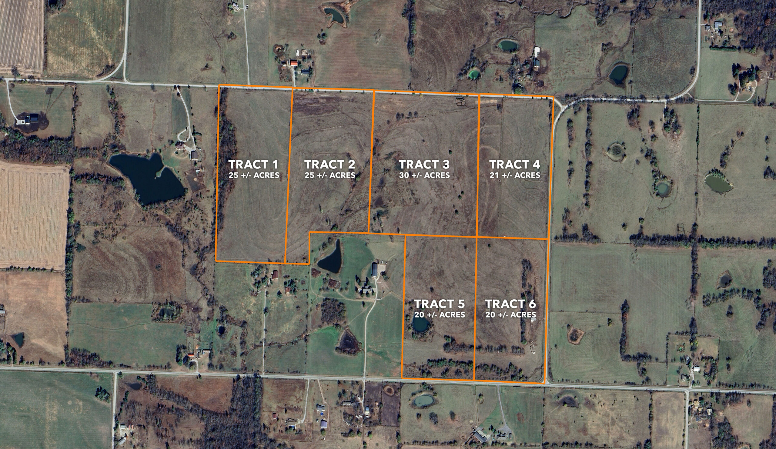 Located in the heart of southern Cass County and just 35 minutes from the Kansas City metro, this property offers a rare opportunity to choose from multiple tracts of beautiful land in a highly desirable setting. With gently rolling topography, open acreage accented by scattered trees, and sweeping country views, each tract presents an ideal spot for your dream home, hobby farm, or weekend retreat. Water and power are available at the road, and all tracts offer excellent frontage with fencing in place. Situated in the Archie School District and just off major routes, this property combines peaceful rural living with everyday convenience.Buyers can select from six unique tracts. At 25 +/- acres, Tract 1 lays out deep with a gentle southern slope and a wooded property line that creates a private backdrop. Also 25+/- acres, Tract 2 has similar depth and slope, and is accented by scattered trees. Tract 3, the largest at 30+/- acres, boasts rolling topography, scattered trees, and wild fruit, including persimmon and blackberry. Tract 4 features 21+/- acres on a corner, with extensive road frontage and an elevated homesite offering panoramic views of the countryside. Tract 5, at 20+/- acres, has highway frontage, as well as a .6-acre pond and partially-treed ground; perfect for both recreation and building. Tract 6, also 20+/- acres, sits on a highway corner and includes mature trees, a water meter, and an old barn, adding charm and utility. Whether you’re looking for a quiet place to build, land to enjoy, or an investment with long-term potential, these Cass County tracts deliver. A survey is pending.