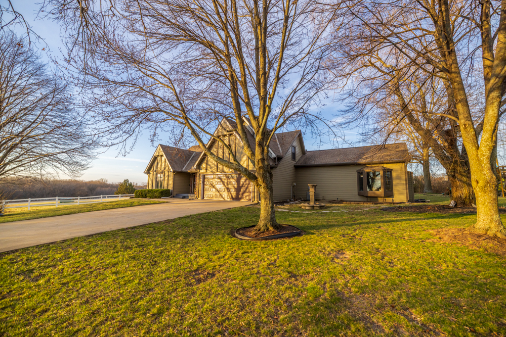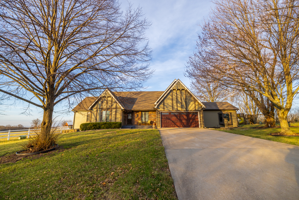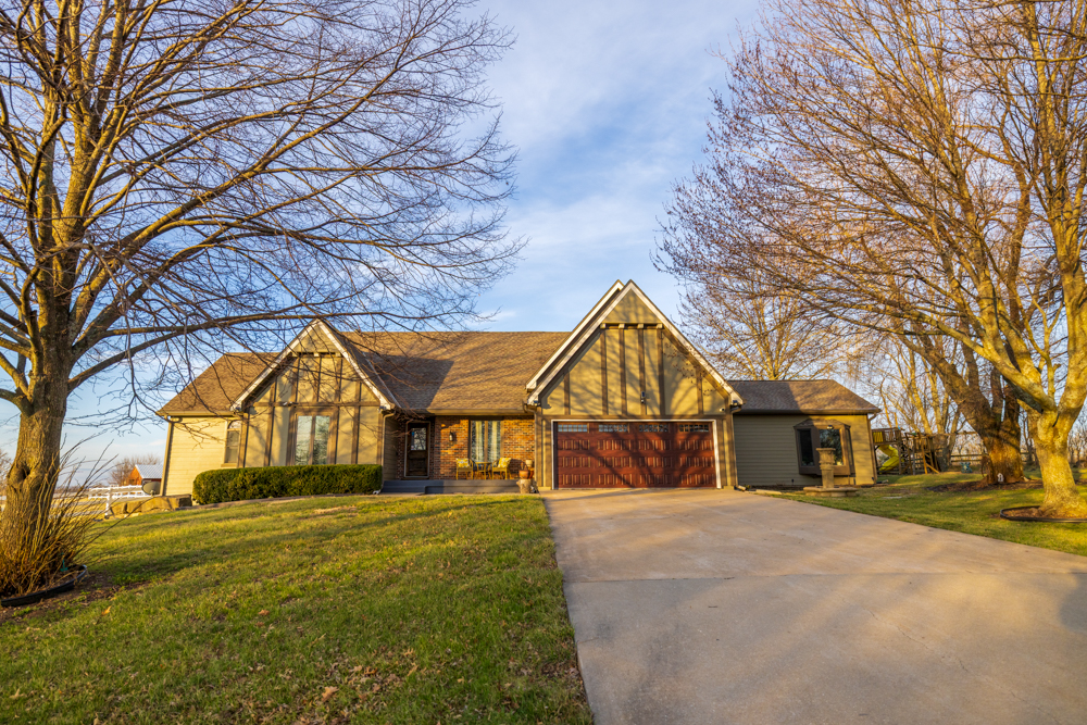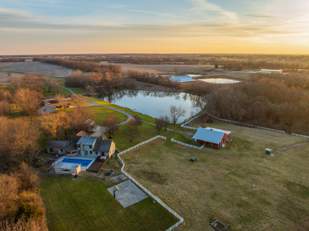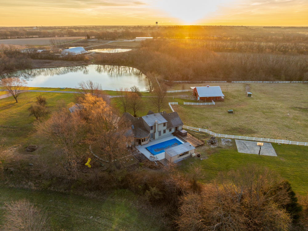 Located in western Cass County, just south of Belton, Missouri, is a rare opportunity to enjoy the best of both country living and convenient city access. A charming house with views of the 3.5-acre pond features 4 large bedrooms, an incredible master suite, an open-concept kitchen shared with the living area, a formal dining room, and ample garage space. The in-ground pool and covered screened-in porch are a great feature for relaxing or entertaining alike.