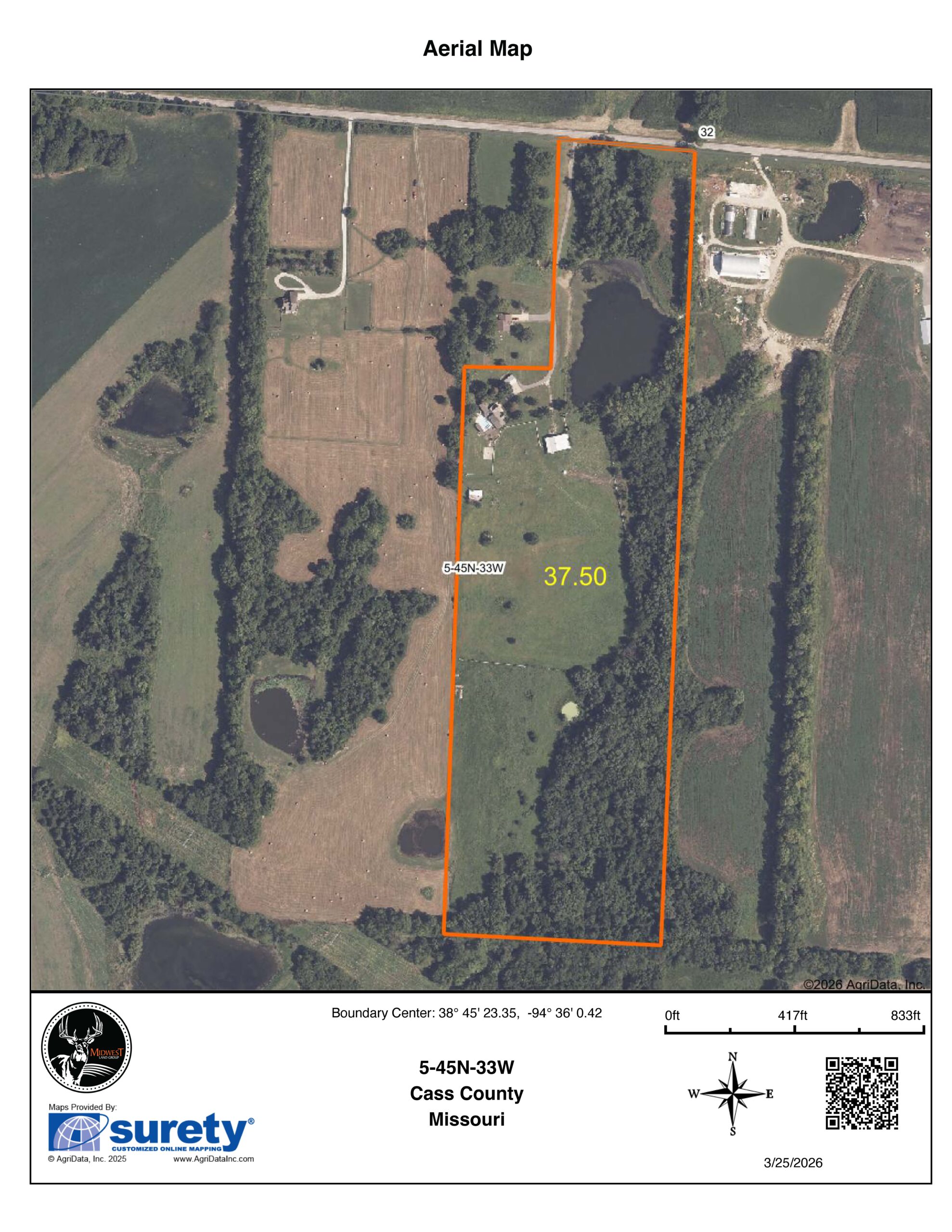 The land consists of 37.5 +/- acres and is a great mix of fenced-in pasture, timber, and a beautiful pond loaded with fish. The pasture is livestock-ready, split into two paddocks and supported by a barn with a tack room, ready for your stall configuration. The timber is a nice mix of hardwoods with heavy deer trails running along the east side and to the south. This property is located in an area known for large whitetails and will hunt very well. Whether you are looking for a place to retire or to raise a family, this one checks all the boxes. Please reach out with any questions or to schedule your showing.