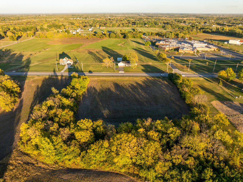 Located north of Peculiar, just a stone’s throw from the Ray-Pec High School and South Middle School campuses, is the brand new Timber Ridge Farms subdivision. Ranging from 4.44 to 5.16 acres, there are 14 diverse lots to choose from. The ground is a mix of open and wooded land, with beautiful scenery, a country feel, and wildlife throughout. Currently under construction, the private Timber Ridge Drive runs the high ground down the middle of the subdivision, ends in a cul-de-sac, and is to be chip & sealed. Power and water utilities are being installed, and hookups will be available. The gently sloping topography offers multiple options for floor plans, and makes each acreage ideal for a reverse ranch/walkout; and with a centralized east/west road configuration, most of the lots present good southern exposure. With an entrance from S School Road, near E 203rd Street, it is just 1.3 miles from I-49, providing a convenient commute to the metro.At 4.51 acres, Lot 14 is a corner lot with frontage on both S School Road and Timber Ridge Drive. It is mostly open ground, and is broken up into two fields, offering multiple homesites and entrance options.