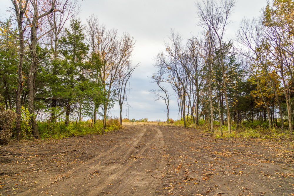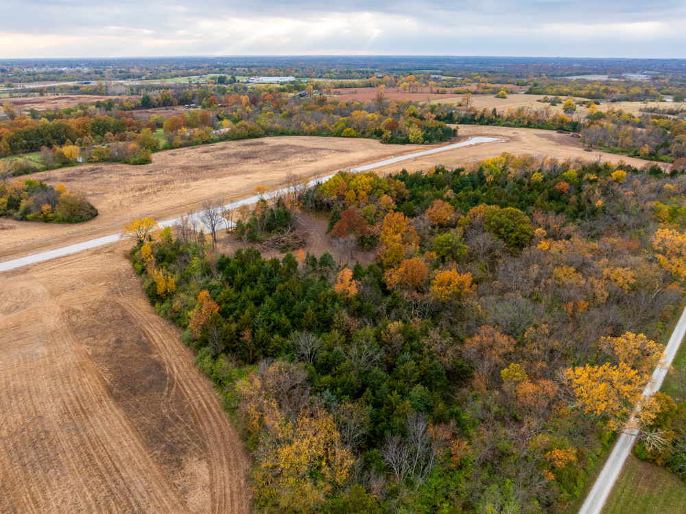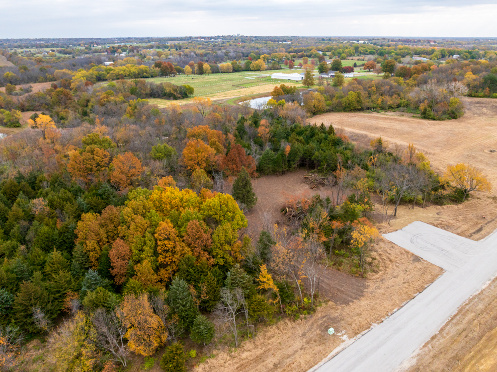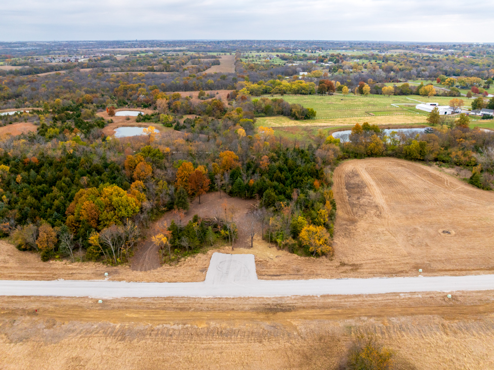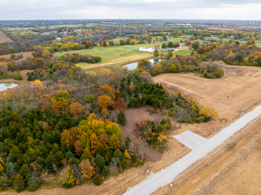 Located north of Peculiar, just a stone’s throw from the Ray-Pec High School and South Middle School campuses, is the brand new Timber Ridge Farms subdivision. Ranging from 4.44 to 5.16 acres, there are 14 diverse lots to choose from. The ground is a mix of open and wooded land, with beautiful scenery, a country feel, and wildlife throughout. The recently chip-&-sealed private Timber Ridge Drive runs the high ground down the middle of the subdivision, and ends in a cul-de-sac. Power and water utilities are installed, and hookups are available. The gently sloping topography offers multiple options for floor plans, and makes each acreage ideal for a reverse ranch/walkout; and with a centralized east/west road configuration, most of the lots present good southern exposure. With an entrance from S School Road, near E 203rd Street it is just 1.3 miles from I-49, providing a convenient commute to the metro.At 5.05 acres, Lot 4 is mostly wooded, with some open ground, and has a central valley running north and south. It has trails through the woods.