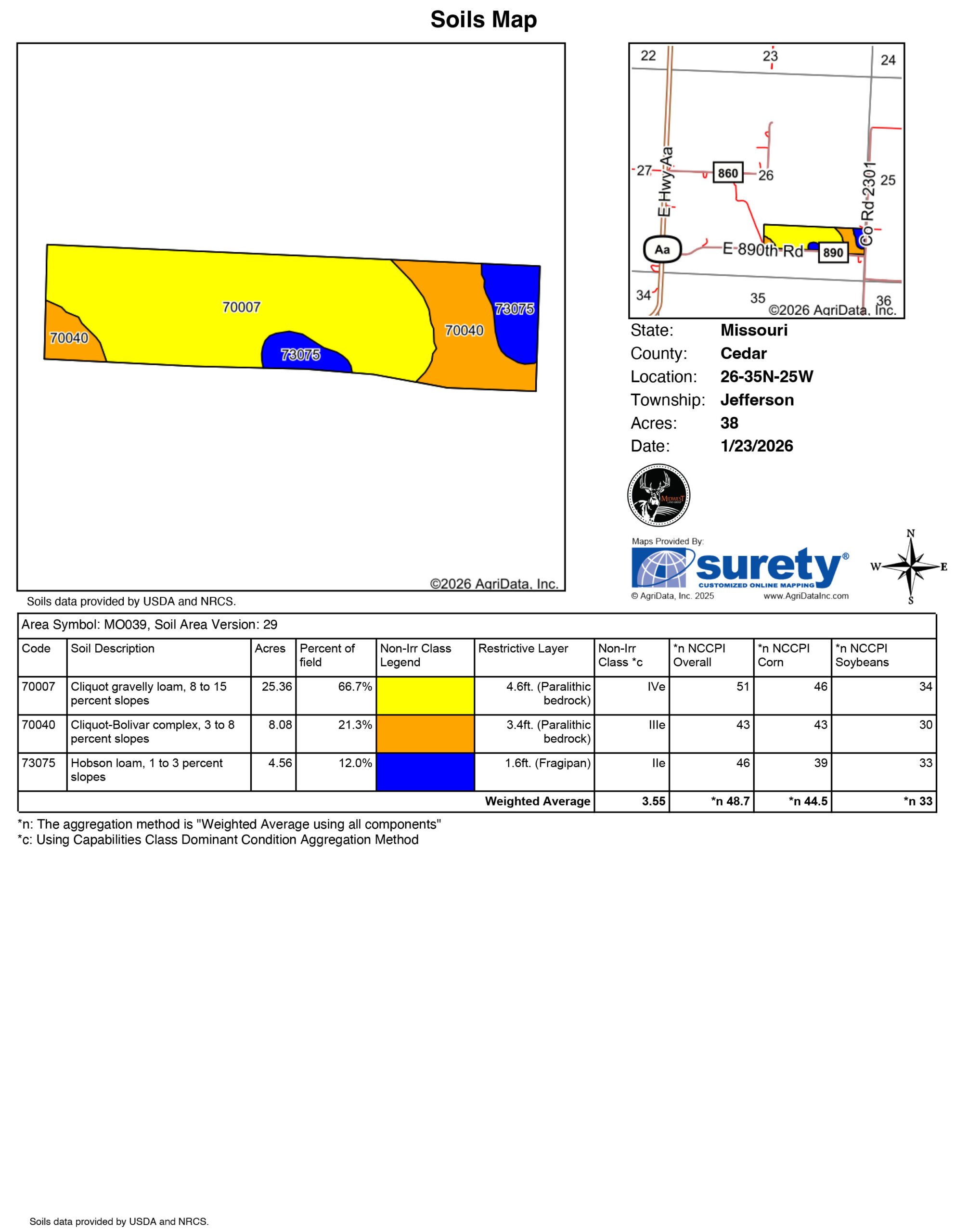 Conveniently located just 9 miles from Stockton Lake and approximately 18 miles from Pomme de Terre Lake, the property offers quick access to excellent fishing and recreation while still maintaining a quiet, private setting. This Cedar County 38 +/- acre tract presents a strong opportunity for buyers seeking versatile Missouri land with long-term potential.