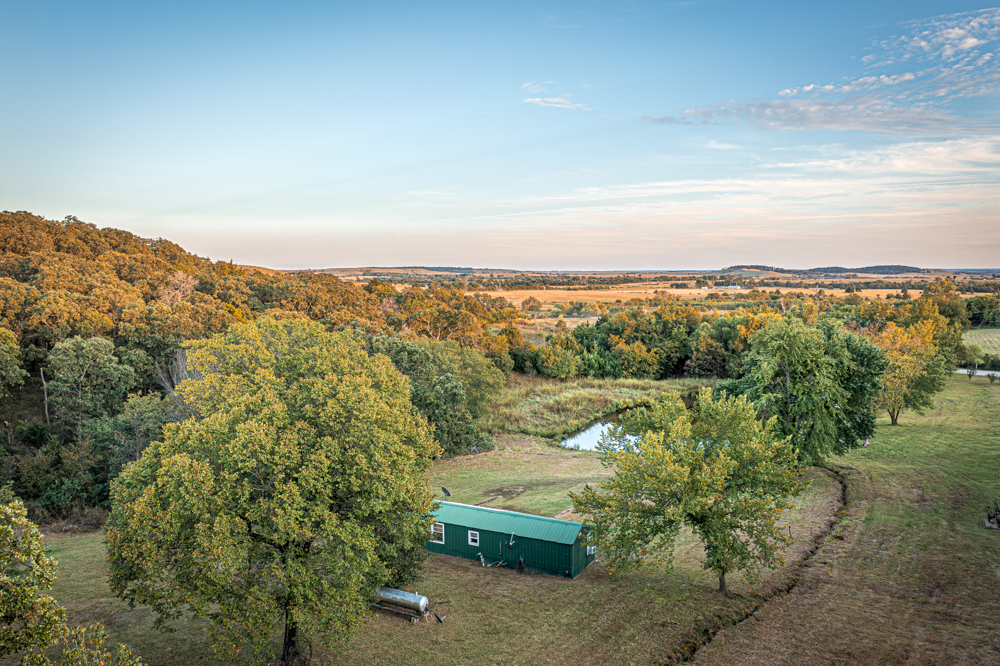 The land showcases approximately 100 feet of elevation change, providing scenic views and excellent habitat for wildlife. The pond out front enhances both the beauty and usability of the property. Additional improvements include a 30’x40’ shop with a concrete floor, rural water, electric, and propane service already in place.