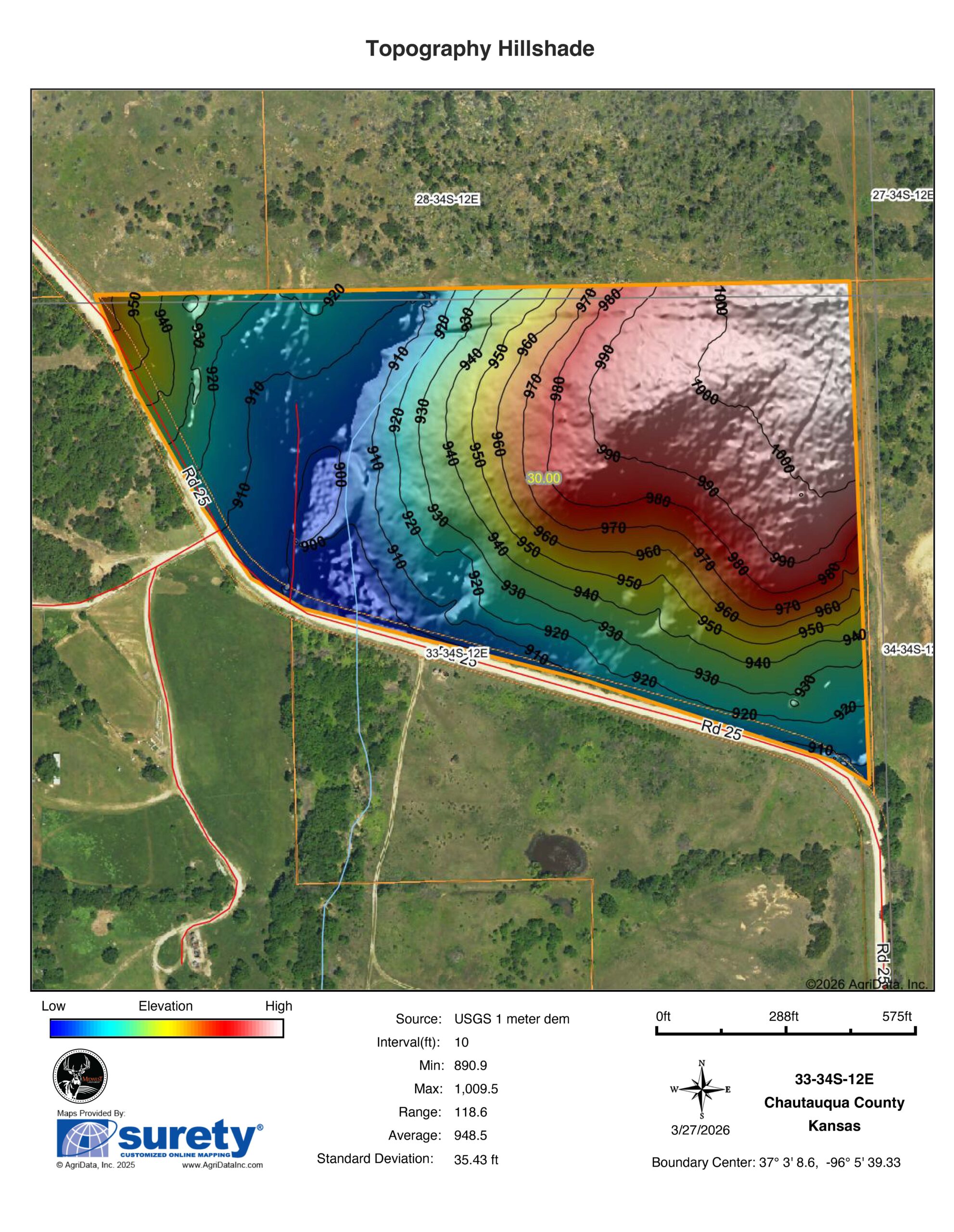 - Approximately 100 feet of elevation change with rolling terrain