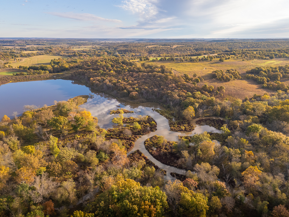 You simply will not find a better opportunity to purchase a fully turn-key recreational property at the caliber of “The Halverson Ranch” in Chautauqua County, Kansas. Comprised of approximately 950 acres, this ranch has been meticulously set up and cared for. The ranch provides world-class deer, turkey and waterfowl hunting along with incredible fishing opportunities. Lush native grasses, densely timbered draws and ridges comprise much of the ranch. The bulk of the timber is oaks and persimmons that produce abundant mast crops for the wildlife. Ponds have been dug and are full on nearly every ridge along with a near 20-acre lake when full. The lake is stocked with fish and provides some of the best bass and crappie fishing imaginable. In the fall, the water sources not only provide for the deer but draw large numbers of waterfowl as the migrate through the area. A well-maintained trail system begins at the gated entry point and traverses throughout the entire ranch providing good access to every inch.