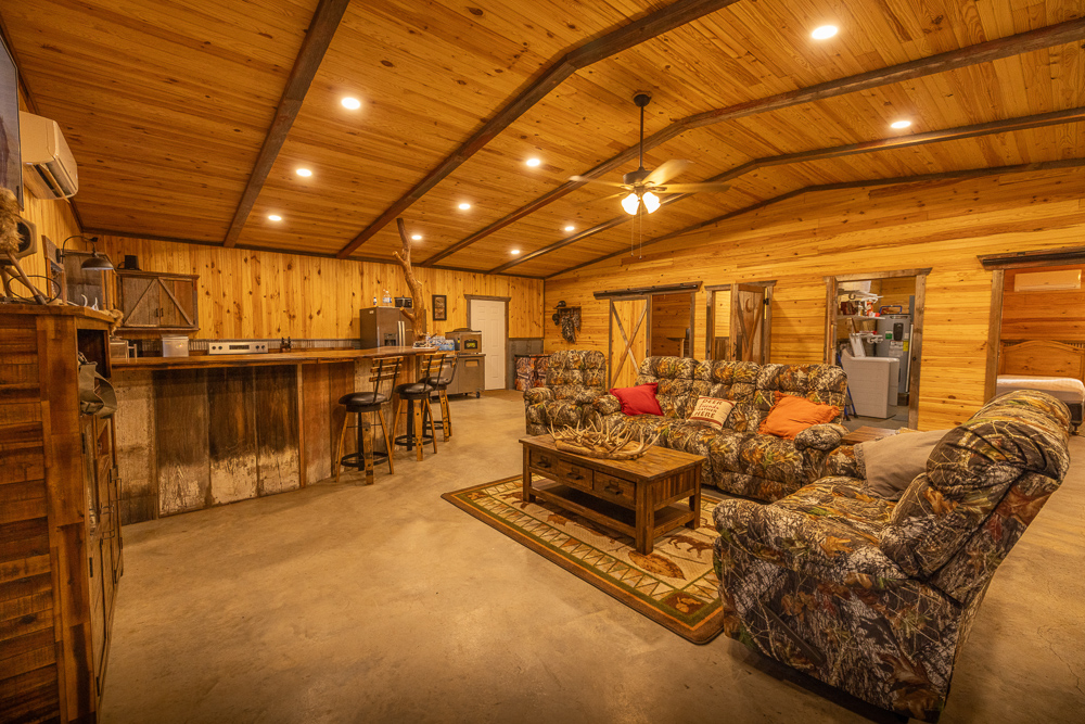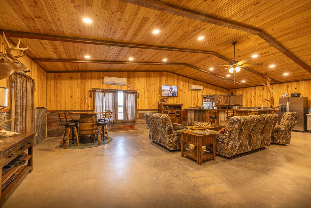 The cherry on top is the newly constructed ranch headquarters. A beautifully constructed 2 bedrooms 1 bathroom cabin with a two-car garage provides the perfect place to call home while visiting the ranch. This is truly a “hunt out your back door” experience as some of the best bucks and numerous turkeys have been harvested in the plot immediately behind the cabin. A pole barn provides additional space to park equipment.