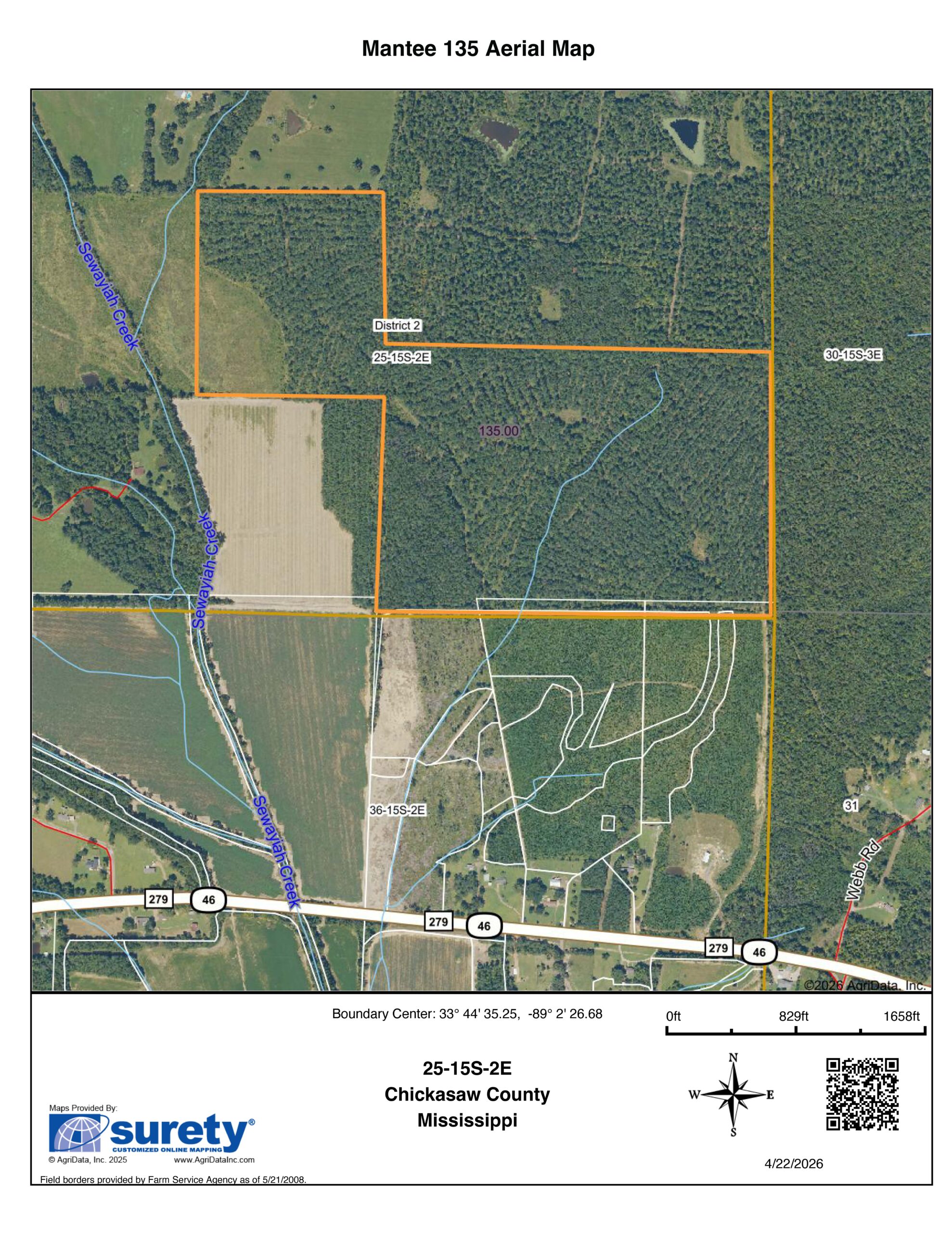 Access is secured via a deeded, surveyed 30-foot easement from County Road 279 (Highway 46). Conveniently located just 13 miles from Houston, 17 miles from Mathiston, 33 miles from Starkville, and 46 miles from Tupelo, this property offers both seclusion and accessibility.