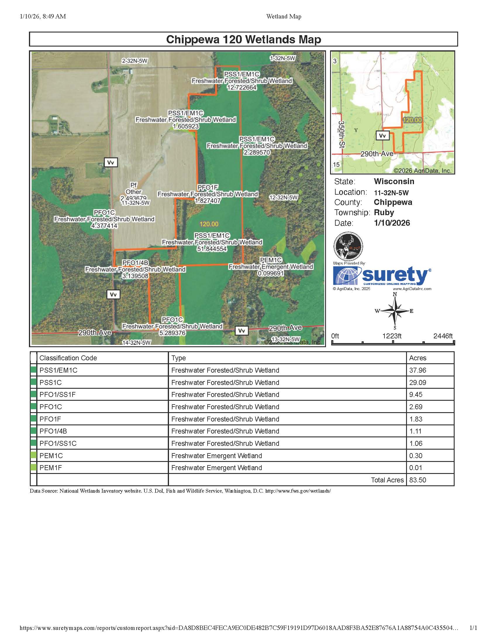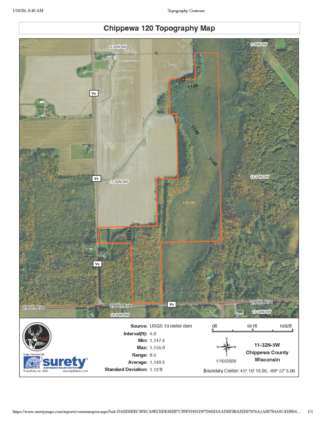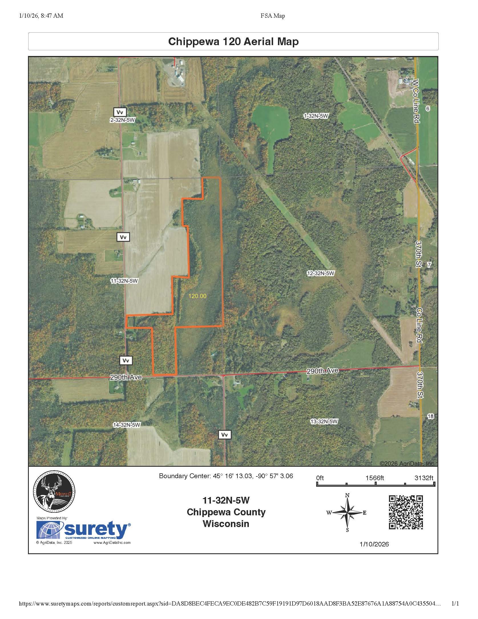 Attention hunters and DIY whitetail habitat improvement folks! The Chippewa 121 is a diverse tract of very affordable land in beautiful Chippewa County with a proven history of mature bucks. This parcel has access on a paved county road on both the south and west lines. Set amidst hundreds of acres of fertile agricultural ground to the north, northwest, and south, the Chippewa 121 is the main travel corridor for whitetail deer in the area and contains substantial lowland cover that harbors the mature bucks.The access points, layout of the property, and mix of habitat combine to provide an awesome hunting property that has a strong foundation of attributes for a new owner to design and develop their dream hunting property at a very affordable entry point. Over a third of the property is high ground with hardwood ridges that border a thick alder-choked lowland. The property is loaded with deer sign: trails, beds, rubs, and last season’s scrapes. Several small stands of mature pine line the hardwoods and flank the neighboring tillable ground. A power line runs through a portion of the land north to south. This is the perfect area to install food plots. Several trails provide access.
