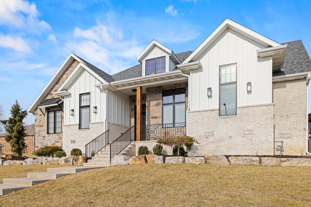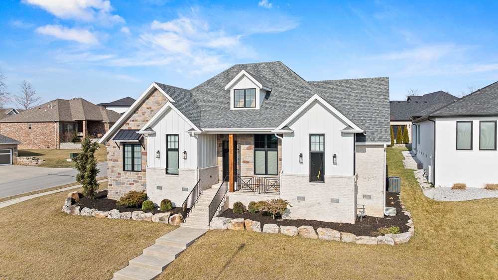 Welcome to one of Nixa's most admired homes, the 2021 St. Jude Dream Home Giveaway! Built by Wise Built Custom Homes, this one-owner residence blends exceptional craftsmanship with thoughtful design and has been meticulously maintained since day one.Located in the Irish Hills Estates, this 3 bedroom, 2 bathroom, 3 car garage luxury smart home offers top-of-the-line finishes and elevated details at every turn. The exterior sets the tone with soft white vertical siding, brick and stone accents, large black-framed windows, and warm wood touches, creating a timeless yet modern architectural statement. Professional landscaping enhances the curb appeal and frames the home's corner lot beautifully.