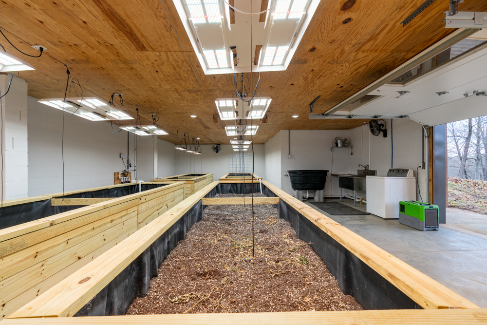 The finished basement is a standout amenity unto itself—equipped with four custom planter boxes, automatic watering systems, drainage, twelve grow lights, and a Pulse environmental monitoring system, all fully managed through a phone app. Separate 200-amp service upstairs and 100-amp service downstairs to ensure ample power for every need.