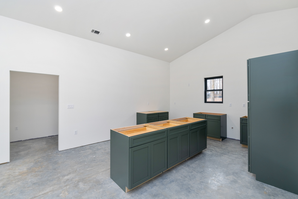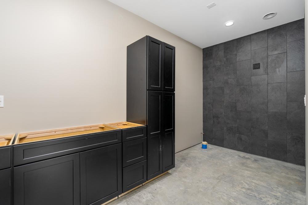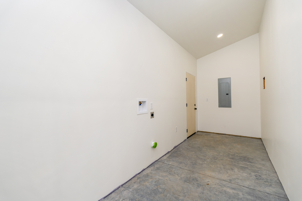 - Needs countertops, appliances, a toilet, and flooring to complete