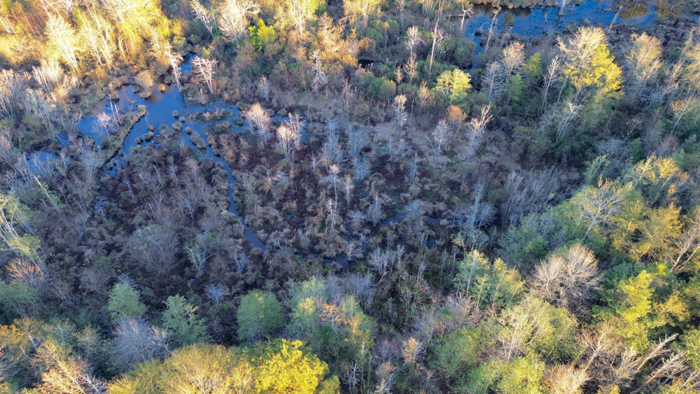 - Small beaver pond creating ideal conditions for wood ducks and other waterfowl