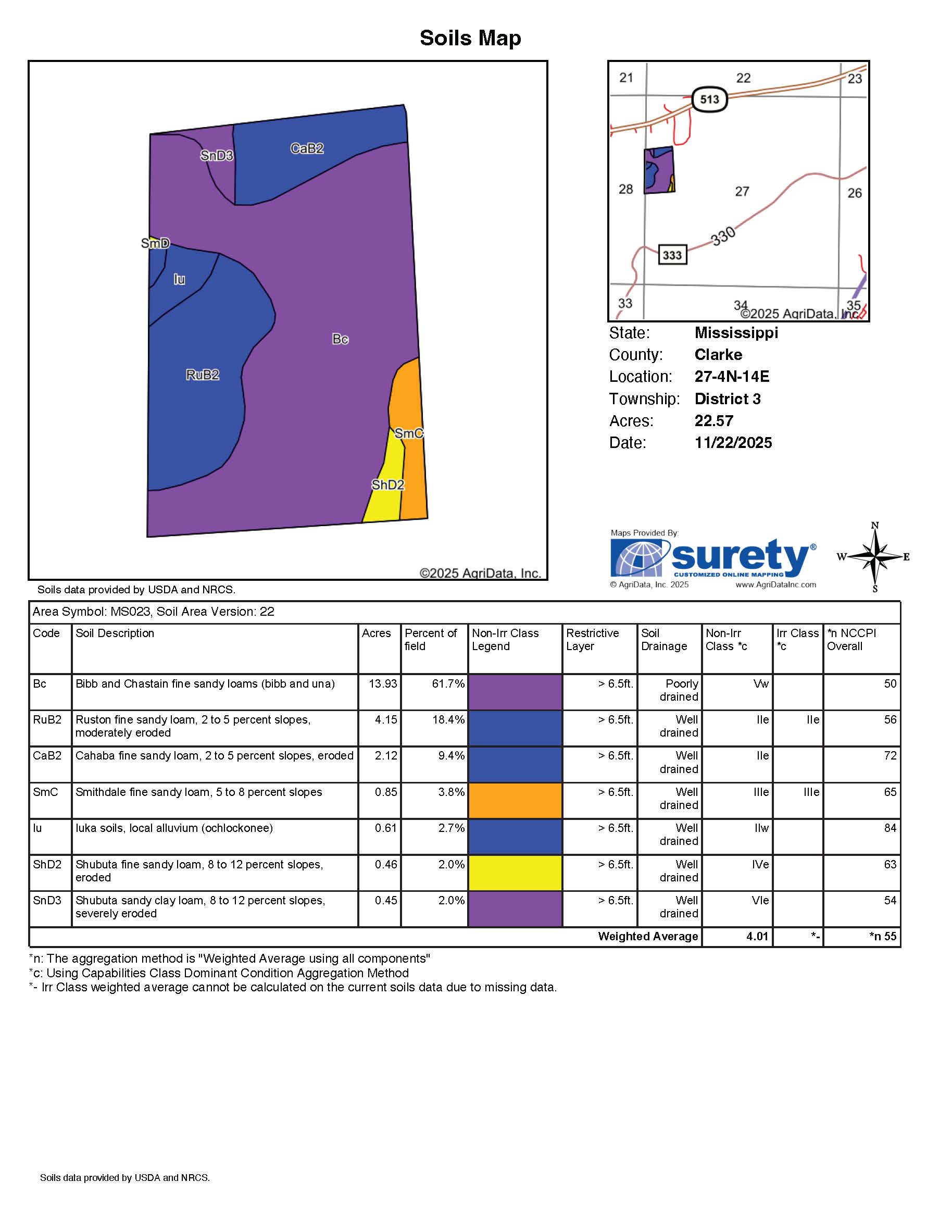 - 22 +/- acres of diverse recreational land just 3 miles from Enterprise, MS